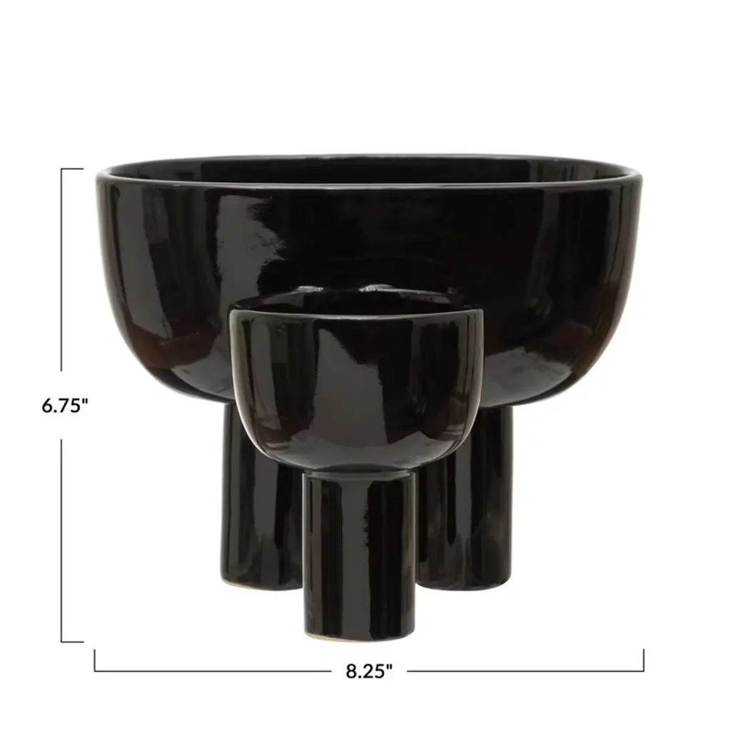 This bold and eclectic stoneware planter with two sections is a one of a kind piece. It will be a striking accent for a kitchen, living room, dining room, or bedroom that will complement a modish or eclectic style.