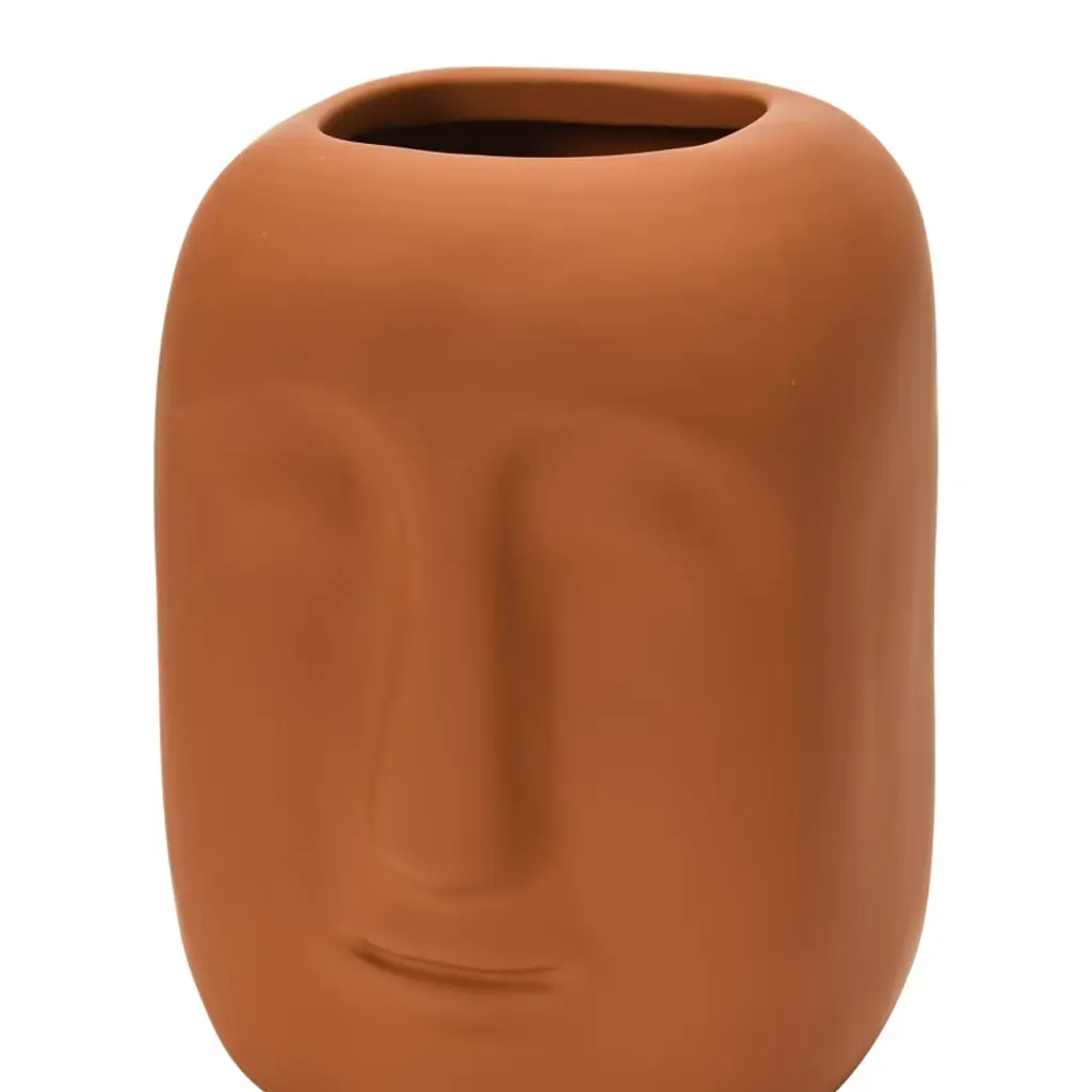 Storied Home Stoneware Planter With Face, Latex Glaze