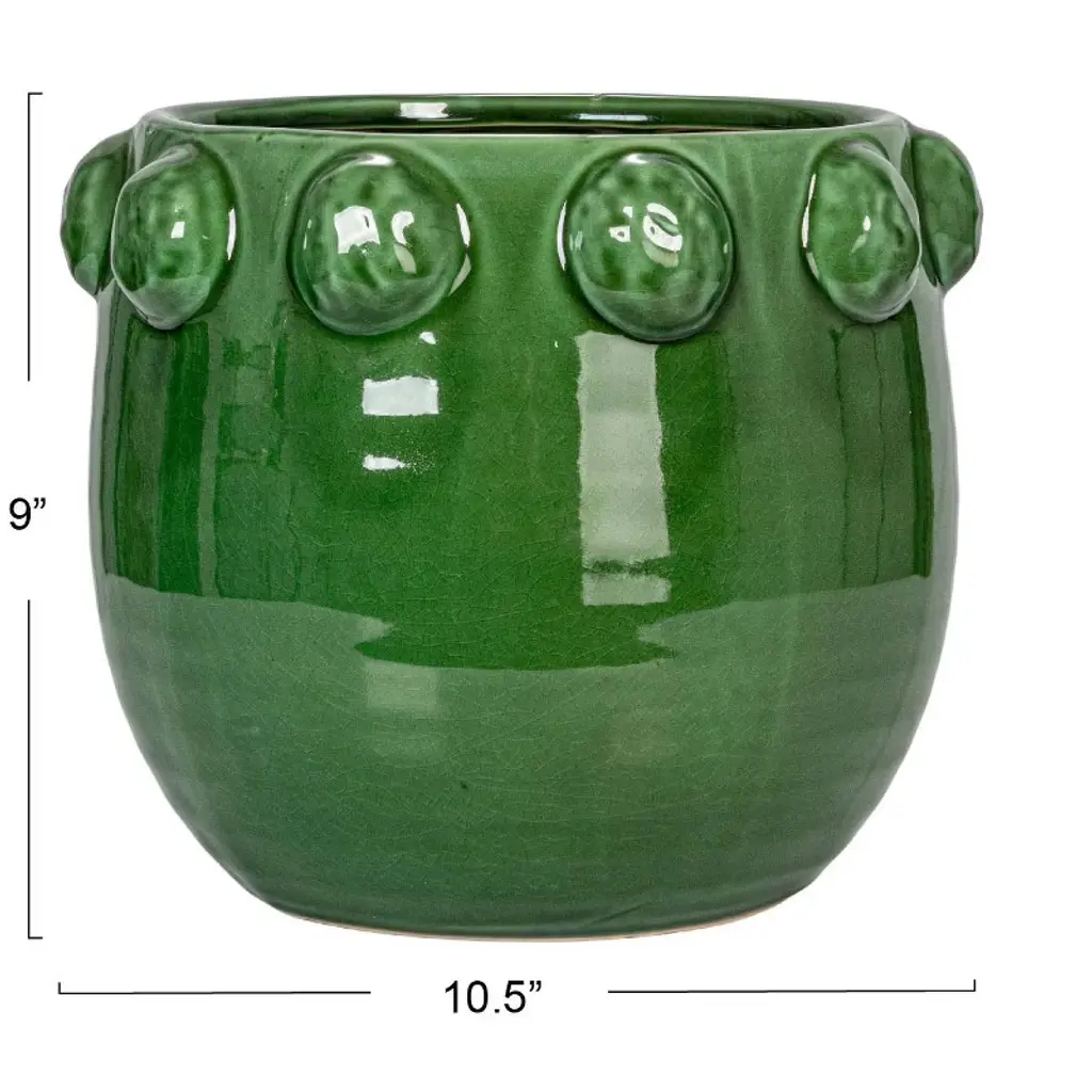 Storied Home Terra-cotta Planter With Raised Dots, Green