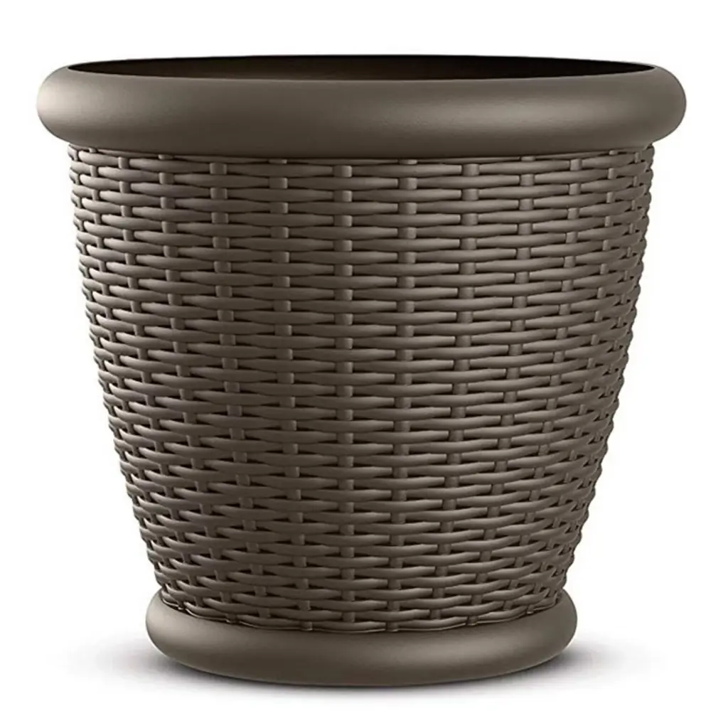 Give your plants a happy home in this 3-pack Suncast Willow 18-Inch Diameter Plastic Decorative Wicker Patio Planter Pot. Whether adorning your indoor oasis or enhancing your outdoor garden, these versatile planters seamlessly fit any space. Crafted to perfection, it not only elevates your decor but also nurtures your plants with its moisture-retention design, ensuring their health and vitality. These decorative plastic pots feature a contemporary wicker finish and function as both an indoor and outdoor planter. Designed to retain moisture longer than standard clay pots, these planters are ideal for growing healthy plants. Wherever you put it, these flower or plant pots add to the ambiance of any indoor or outdoor space. The lightweight construction makes these pots easy to handle, especially when rotating plants. The sun-protected materials ensure that these planters will look nice for several seasons. The 18-inch diameter and 16.5-inch height make these planters large enough to grow a variety of flowers and plants. With ample space to accommodate a variety of flowers, unleash your creativity and cultivate a vibrant garden sanctuary like never before. The drillable drain holes in the base let you customize these planters to your needs. Bring some beauty to your home or yard with these 3 packs of Suncast Willow 18-inch Plastic Decorative Wicker Patio Planter Pot.