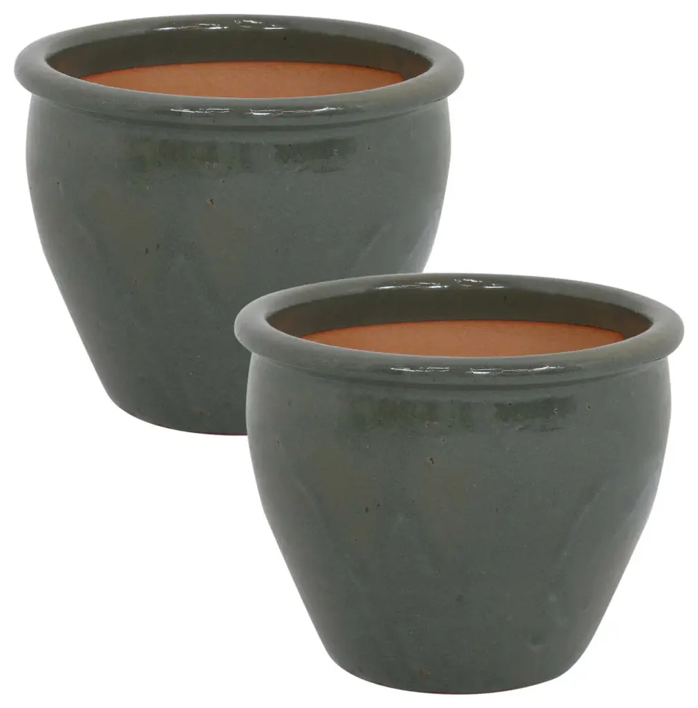 Sunnydaze Set Of 2 Chalet High-Fired Glazed Ceramic Planter, Gray, 12"