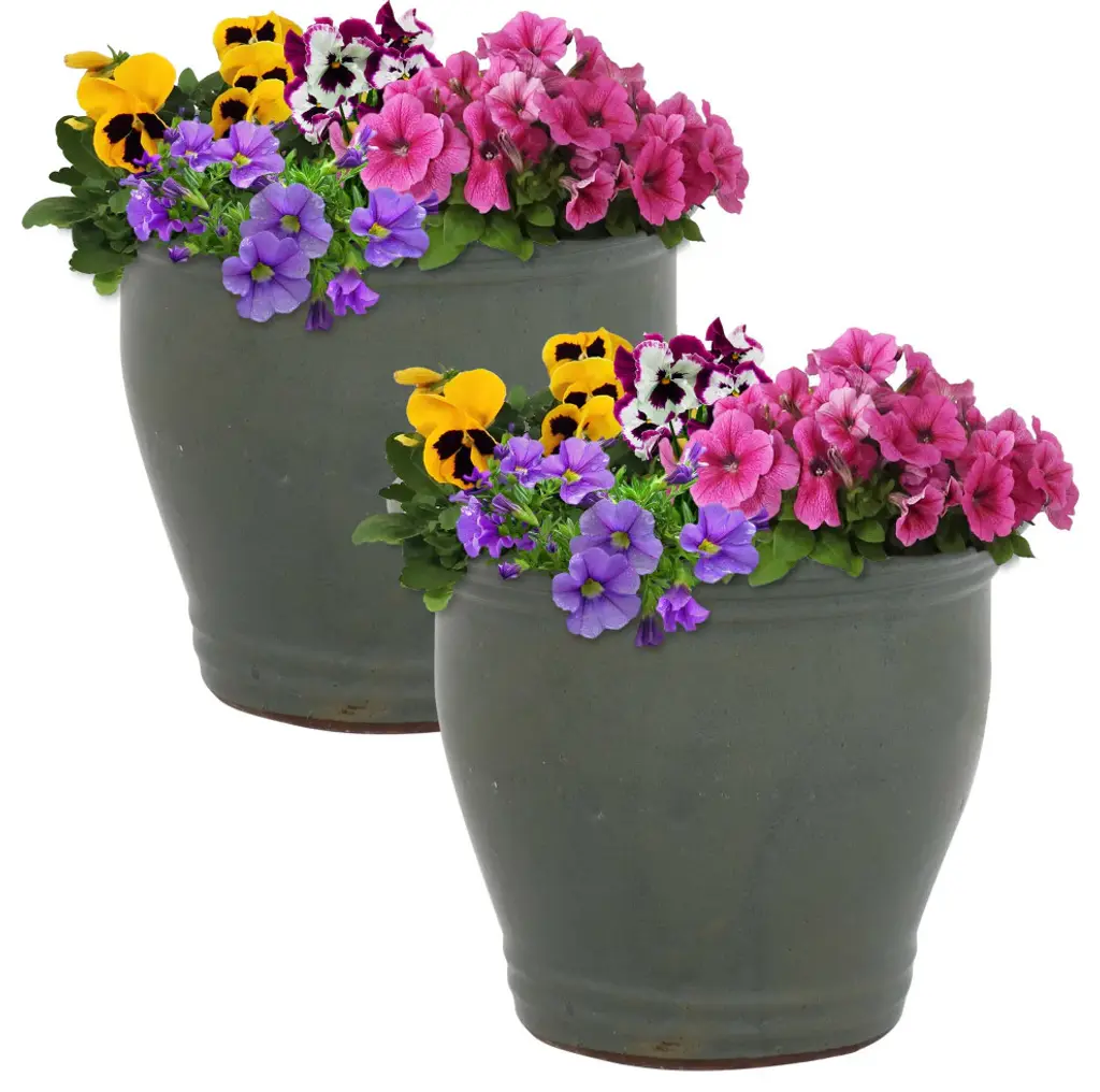 Sunnydaze Studio Glazed Ceramic Planter, Set Of 2, 11", Gray