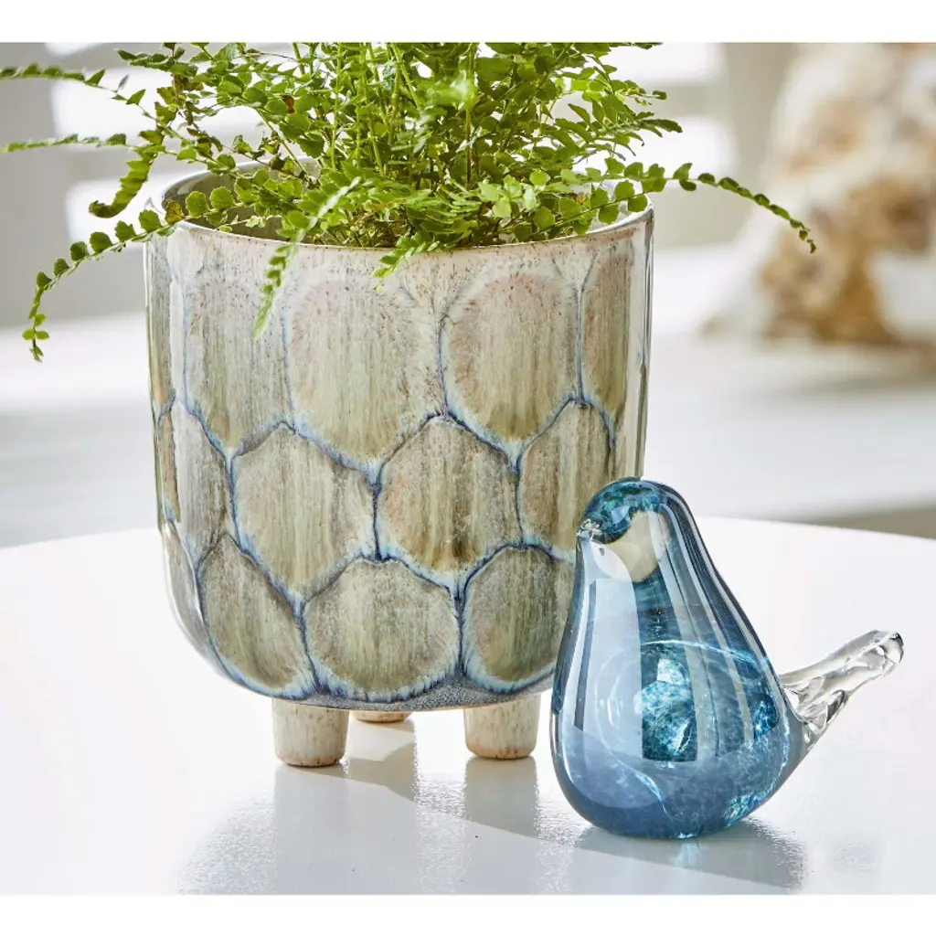 Tag Oceania Light Blue Ceramic Footed Planter - 5.5" H X 5" L X 5" W - Perfect For Summer Gardening And Home Decor