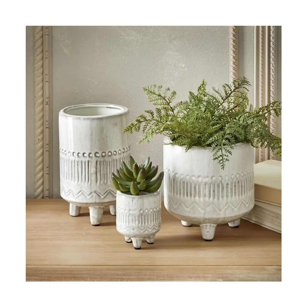 Introducing the Olema Large Carved Terracotta Planter, a stunning addition to your indoor or outdoor space. This beautifully crafted white garden pot features intricate carvings that add a touch of elegance to any setting. Measuring 7.09 inches in height and 4.72 inches in both length and width, it is the perfect size for a variety of plants, from vibrant flowers to lush greenery. Made from durable terracotta, this planter is designed to withstand the elements while providing a stylish home for your plants. Its versatile design makes it suitable for everyday use, whether you place it on your patio, balcony, or inside your home. The smooth surface is easy to wipe clean, ensuring that it always looks its best. Elevate your gardening experience with the Olema Large Carved Terracotta Planter and bring a touch of nature into your life.
