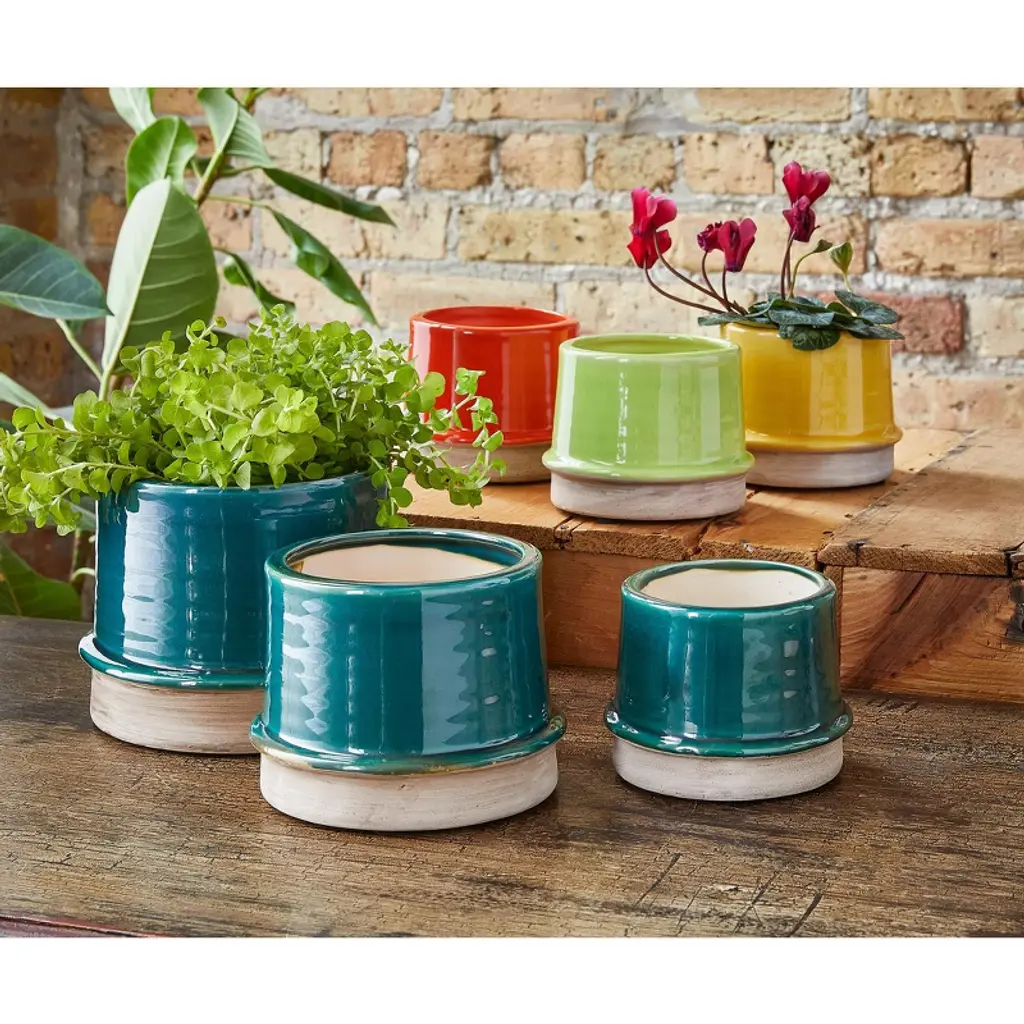 Tagltd Radius Planter Small Citron Green Glazed Stoneware 4L X 4W X 3.7h Inches Fits Up To A 3" Drop In Pot