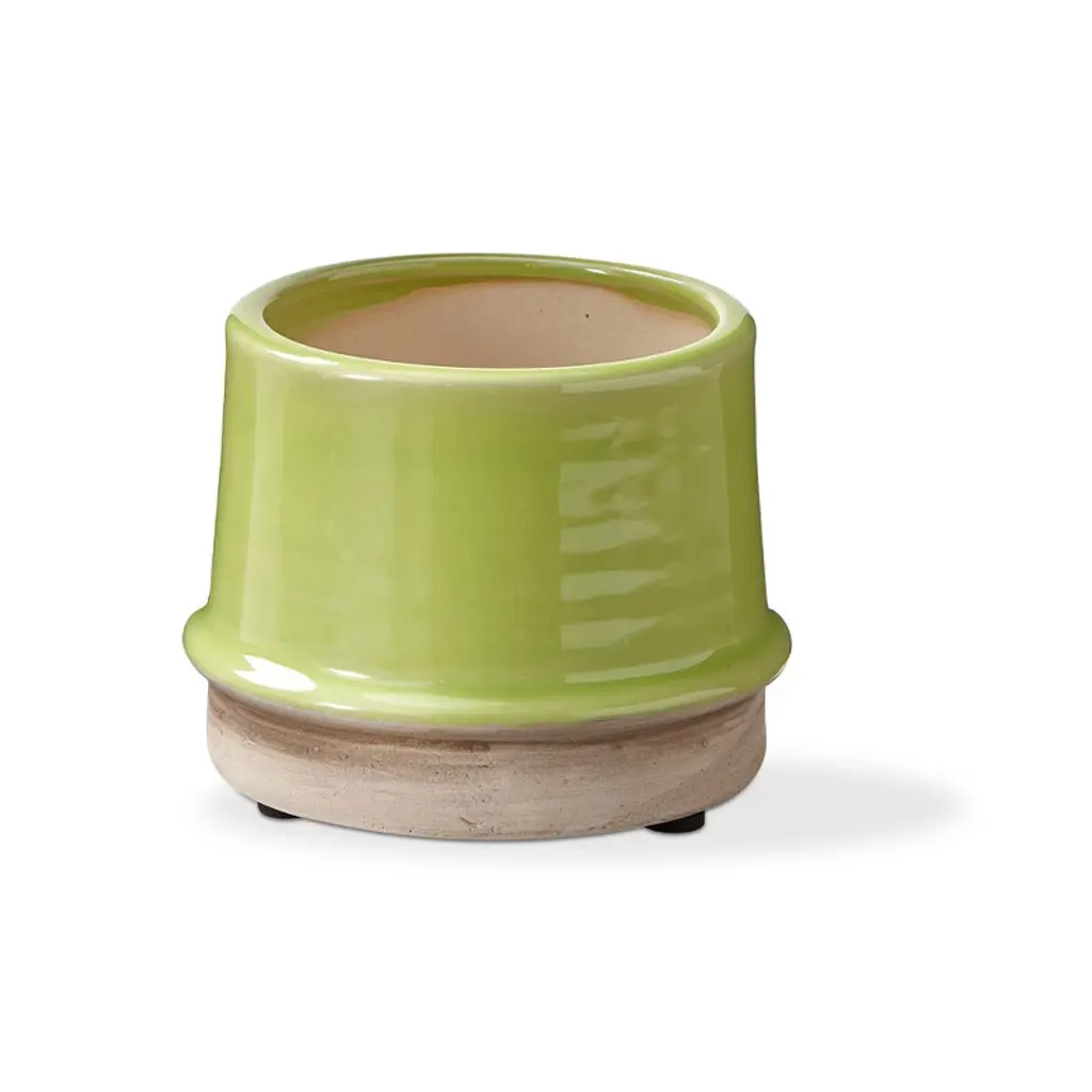 Tagltd Radius Planter Small Green Glazed Stoneware 4L X 4W X 3.7h Inches Fits Up To A 3" Drop In Pot