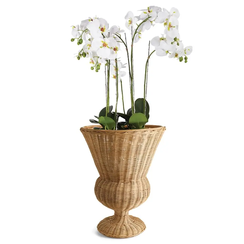 Tahmina Coastal Beach Brown Woven Rattan Footed Planter Vase