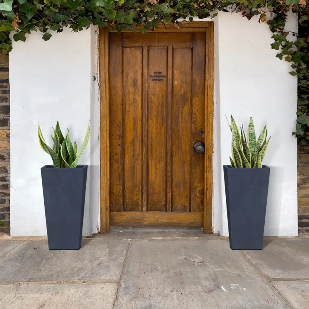Tali 24" Tall Rectangular Concrete Metal Indoor Outdoor Tapered Planters W/ Drainage Hole, Modern Style For Home And Garden (Set Of 2)