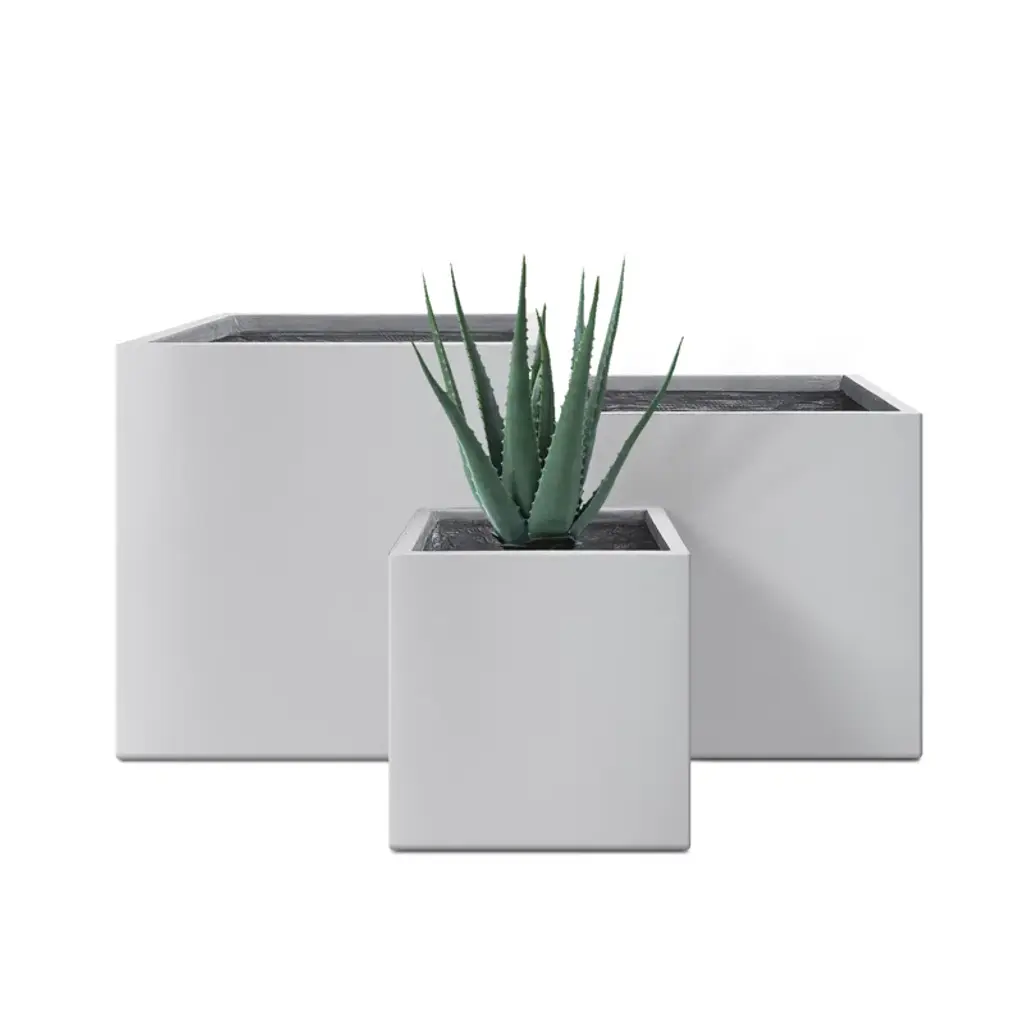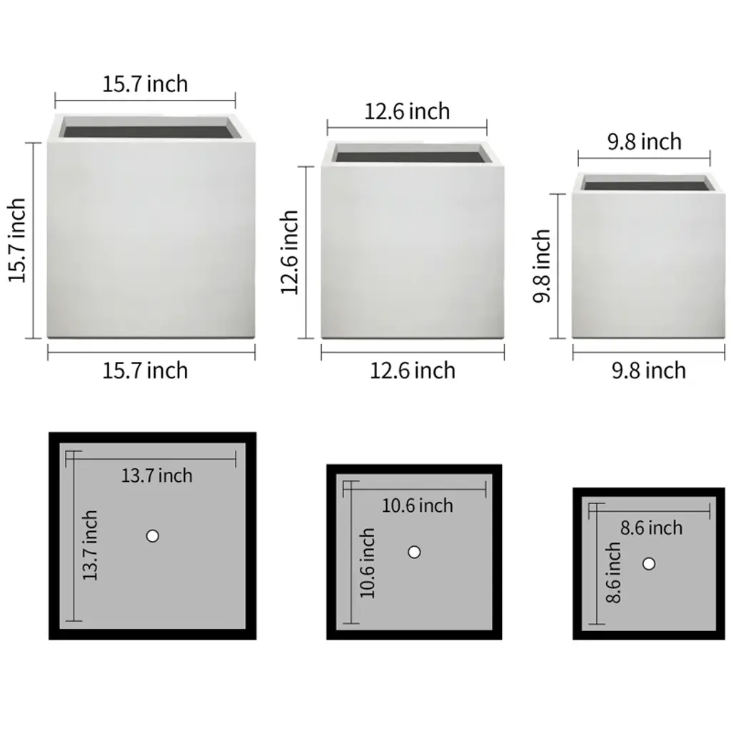 Tali 3 Piece 16", 12" And 10" H Square Lightweight Pure White Concrete Metal Indoor Outdoor Planters, Seamless W/ Drainage Hole Set