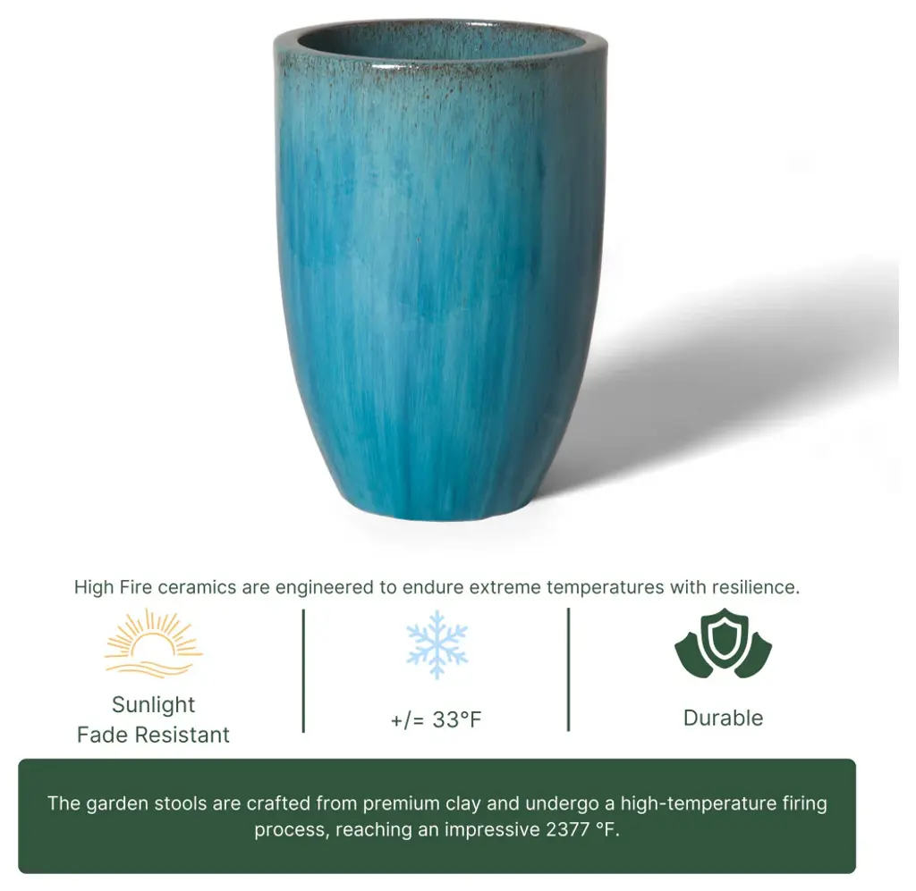 This Planter is crafted of ceramic and finished with Blue glazed. Suitable for outdoor and indoor use. Adds color and texture to your home and garden. The design brings elegance to homes and living spaces.
