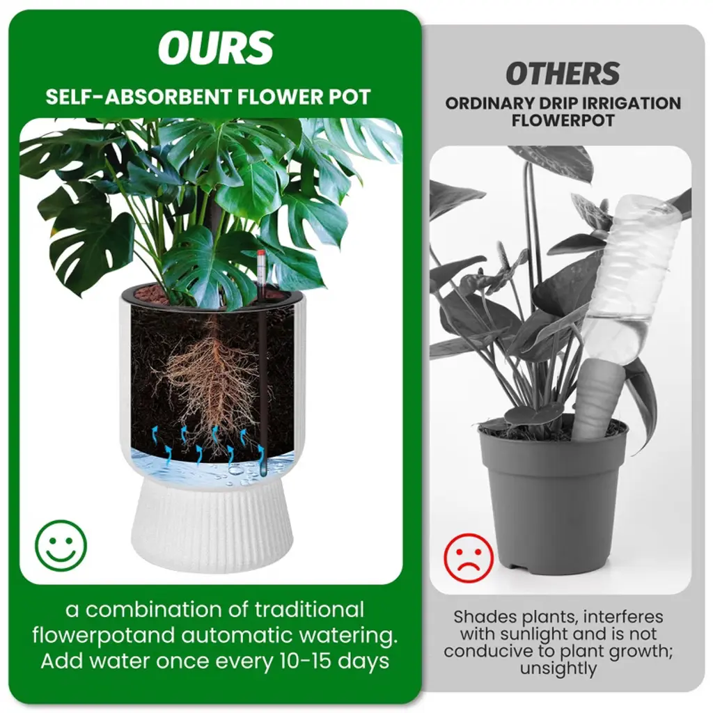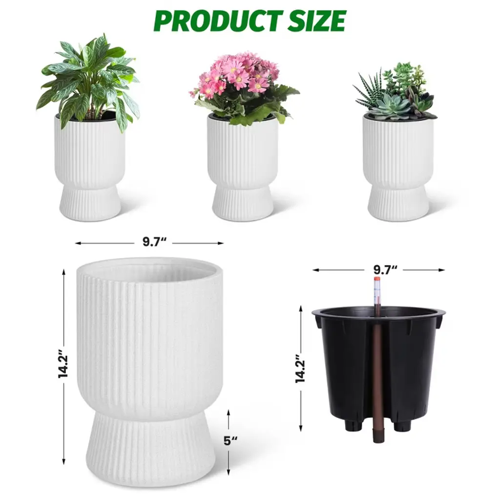 Tall Planter Pots Set Of 2, Self Watering Pots For Indoor&outdoor Plants, Flower With Built-in Drainage And A Water Level Monitor, For Home, Office