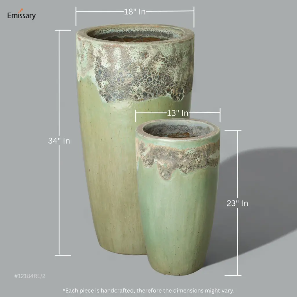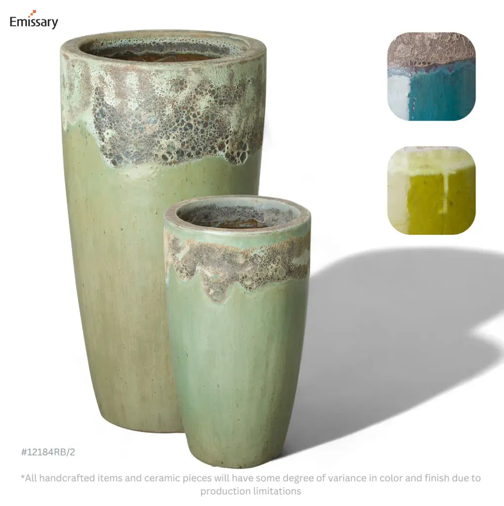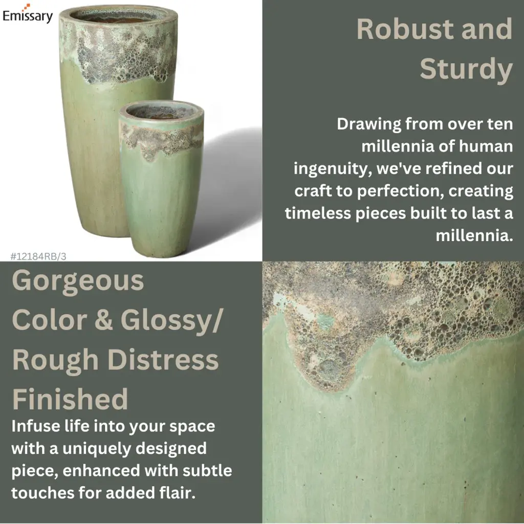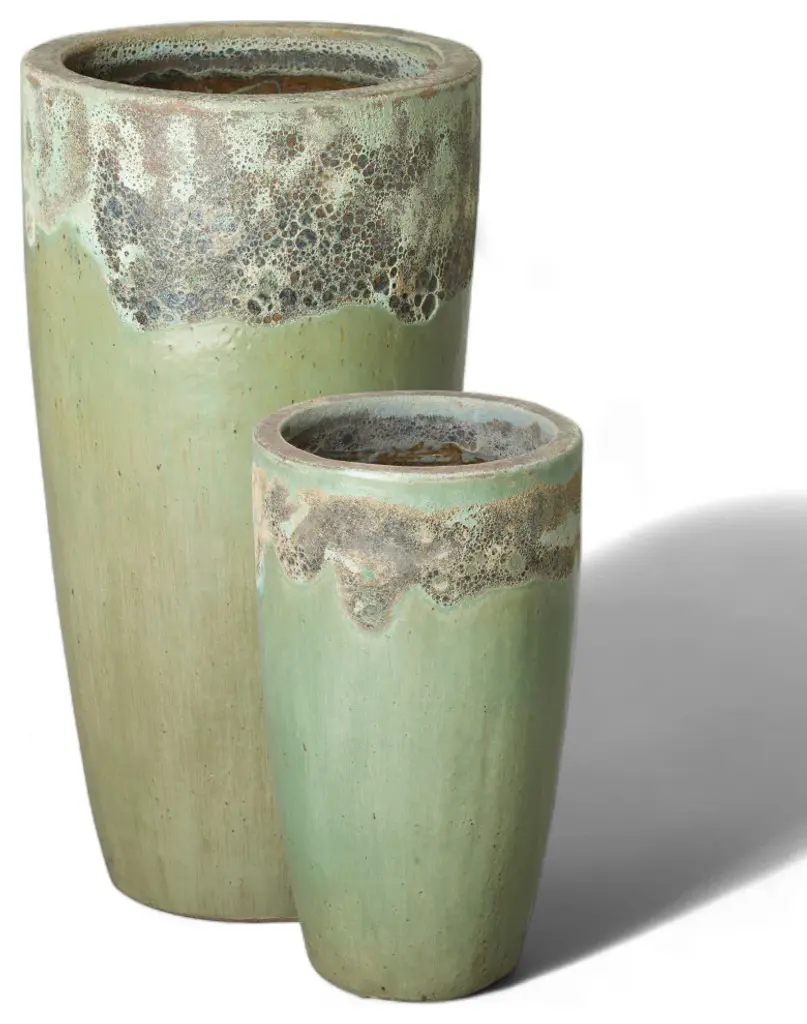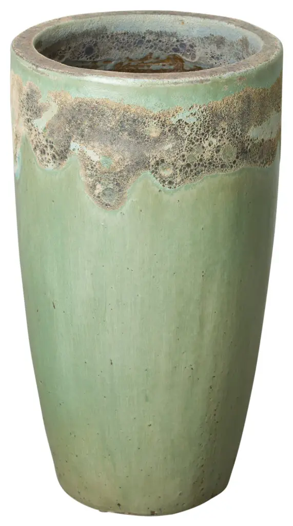 Beautiful round planter perfect for modern settings. The spa blue glaze adds a splash of color to any room. The reef finish on the rim gives the-piece a textured aesthetic. The handcrafted design delivers unparalleled quality.