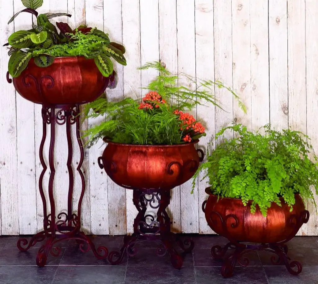 Tall Scroll Iron Floor Planter Copper Victorian Indoor/outdoor Plant Stand