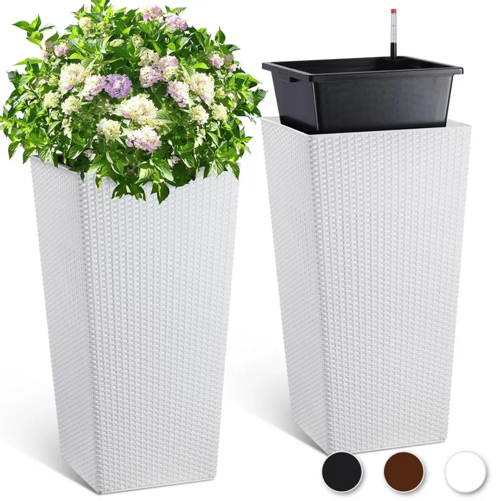 Tall Wicker Planter With Insert Set Of 2-self Watering Large Tall Rattan Planter Pots For Indoor And Outdoor 30inch,black