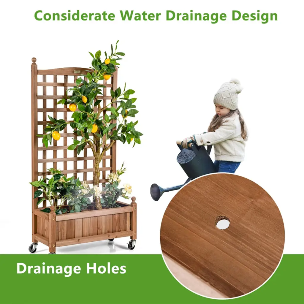 Tangkula 2Pc 50in Wood Planter Box With Trellis And Wheels Mobile Plant Raised Bed For Indoor&outdoor