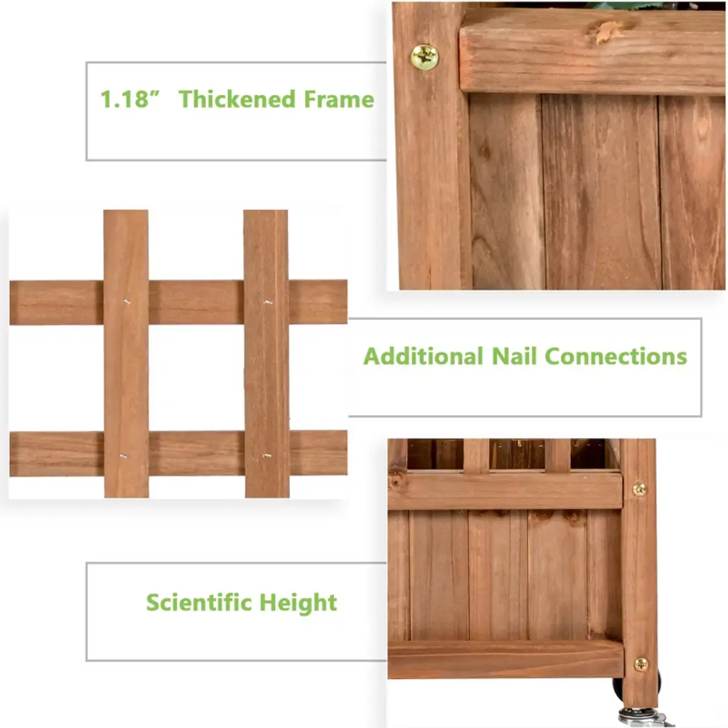Tangkula 50in Wood Planter Box With Trellis And Wheels Mobile Plant Raised Bed For Indoor&outdoor
