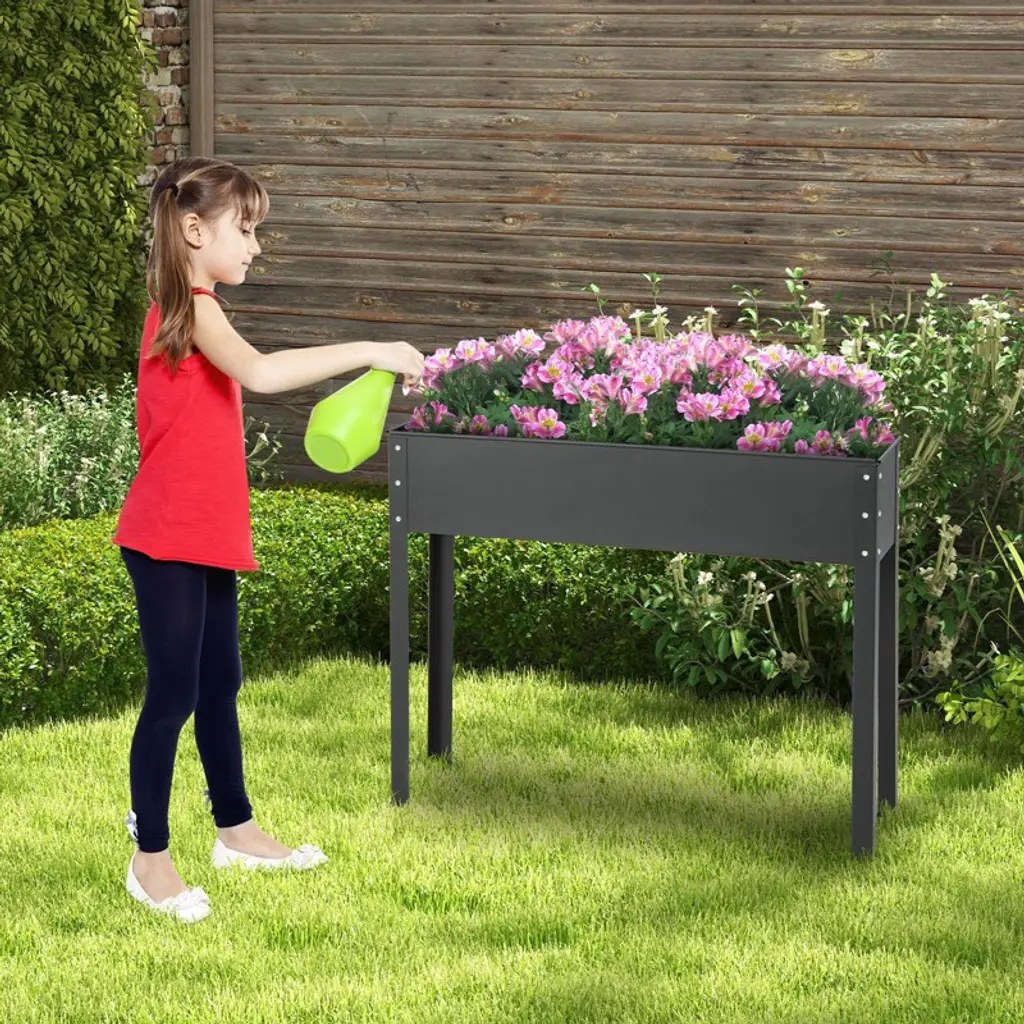 Create a Perfect Growth Environment for Your Lovely Plants! Our metal raised garden bed measures 40" x 10.5" x 31.5" (L x W x H), which is suitable for cultivating various plants. And the 31.5" ergonomic height design helps you reduce the risk of backache or knee pain when enjoying your gardening work. Other than that, our planter box is constructed of high-strength powder-coated metal, which is not easy to deform or rust, ensuring good sturdiness. Thanks to the considerate water drainage design, there is no need to worry about water-logging or drying. It can be a perfect plant container for any indoor or outdoor space, such as your patio, garden, balcony, greenhouse, and more.FeaturesProvides a large planting area for various flowers, herbs, vegetables, fruits, etcConstructed of heavy-duty powder-coated metal, rustproof, sturdy, long-lastingThe bottom drainage hole ensures good water drainage and well ventilationThe 31.5" height option allows you to water and trim plants without bending overWide application, suitable for cultivating plants in any outdoor or indoor spaceEquipped with anti-slip footpads, preventing slipping or sinking into the soft groundWith sturdy screw connections, providing strong support, not easy to crackSpecifications: Color: Black Material: Metal Overall Dimensions: 40" x 11" x 31.5" (W x D x H) Interior Size: 100 x 39.5" x 10" x 8" (W x D x H) Weight Capacity: 44 lbs Net Weight: 14 lbs Package Includes: 1 x Elevated Metal Planter Box 1 x User's Manual