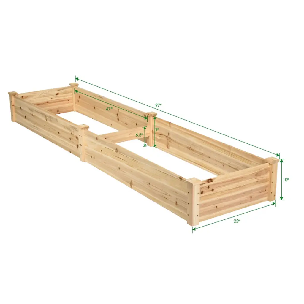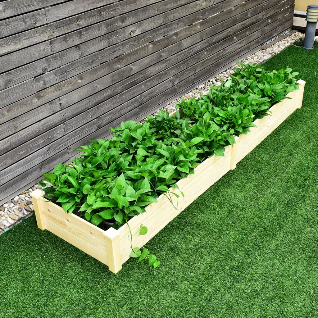 This is our brand new wooden planter box which features an unfinished and authentic wooden style. This rectangular planter box is made of natural solid wooden material which is proof against corrosion and weather-resistant. Stable frame with 2 inch column in width makes this planter box perfect for storing and growing your plants. The large size makes it an ideal choice for growing and displaying any plants you like and enjoy including some herbs, flowers, vegetables and even trees. It can be used as a patio garden, perfect decoration for your patio, lawn, garden and other outdoor living space. Natural look creates a relaxed and laid-back sense for your house, which makes perfect addiction to your garden and other indoor/outdoor living space. Give your house some rustic charm that makes your house close to nature. Don't hesitate to buy it!FeaturesMade of completely natural fir wood without any harmful chemical additives Stable frame with 2 inch column in width makes it perfect for growing your plants An ideal choice for you to grow vegetables, herbs, and fruits Unfinished and authentic wooden style gives this planter box a natural appeal Natural look creates a relaxed and laid-back sense for your housePerfect decoration for your patio, lawn, garden and other outdoor living spaceSmooth surface, easy to clean and maintain with a wet clothSuper simple and convenient for you to put all the authentic wood together