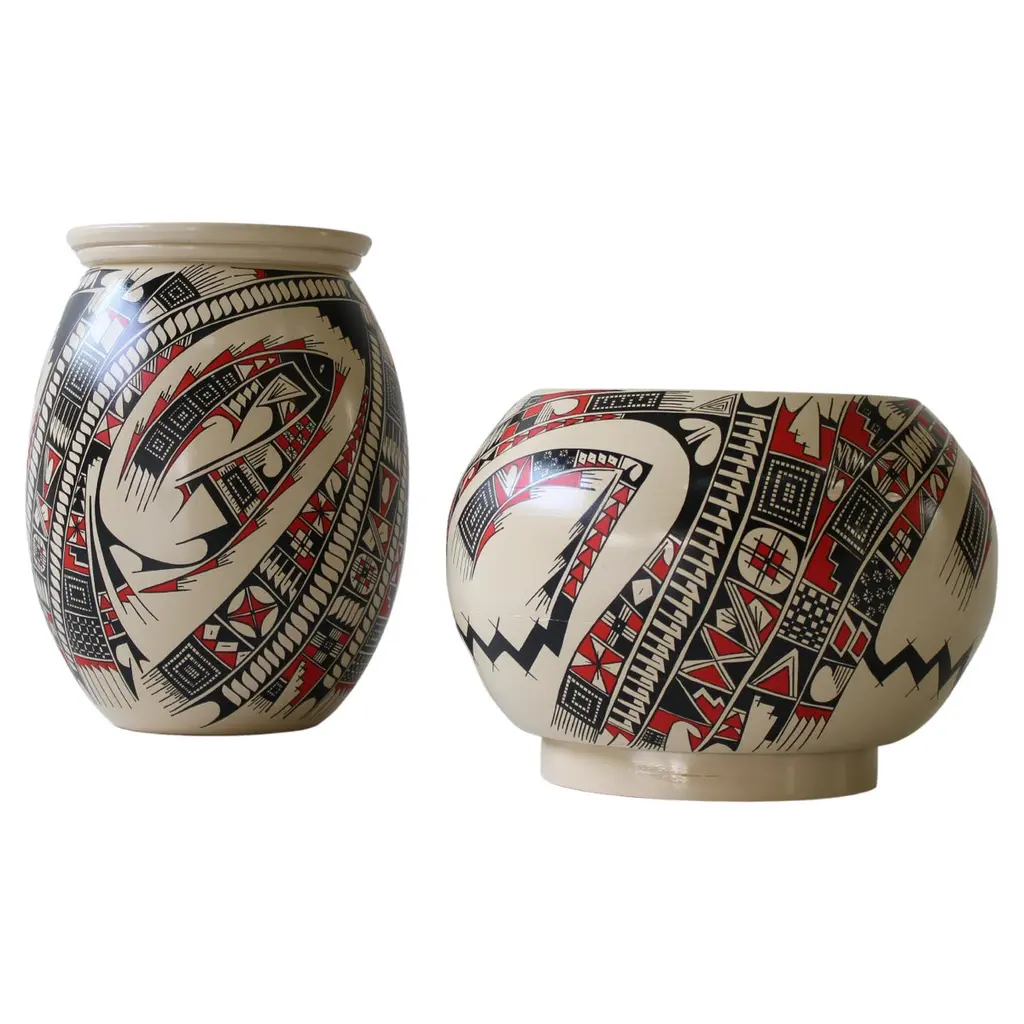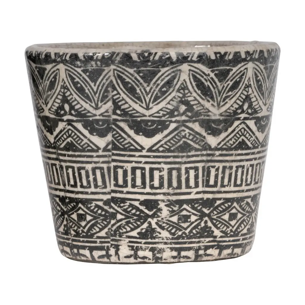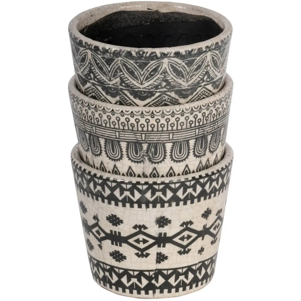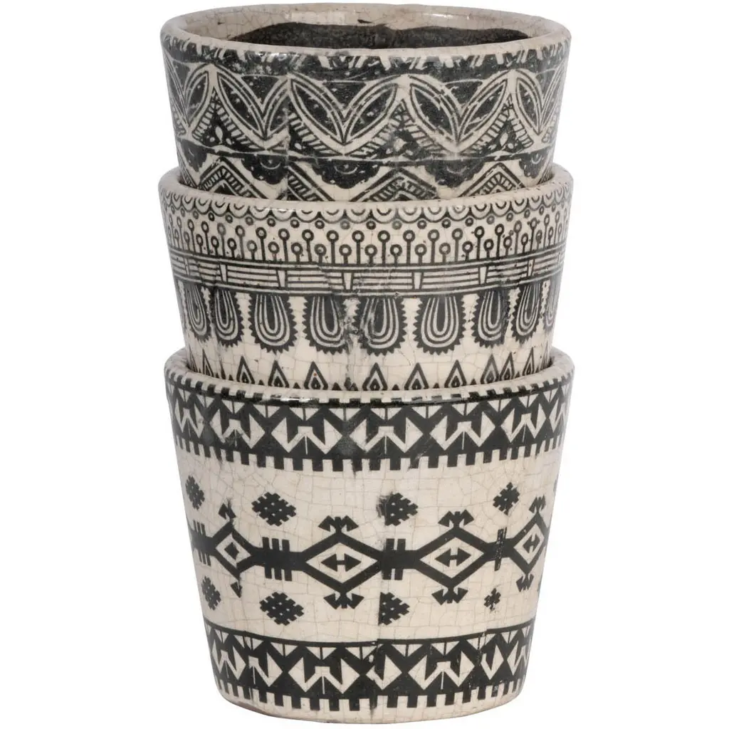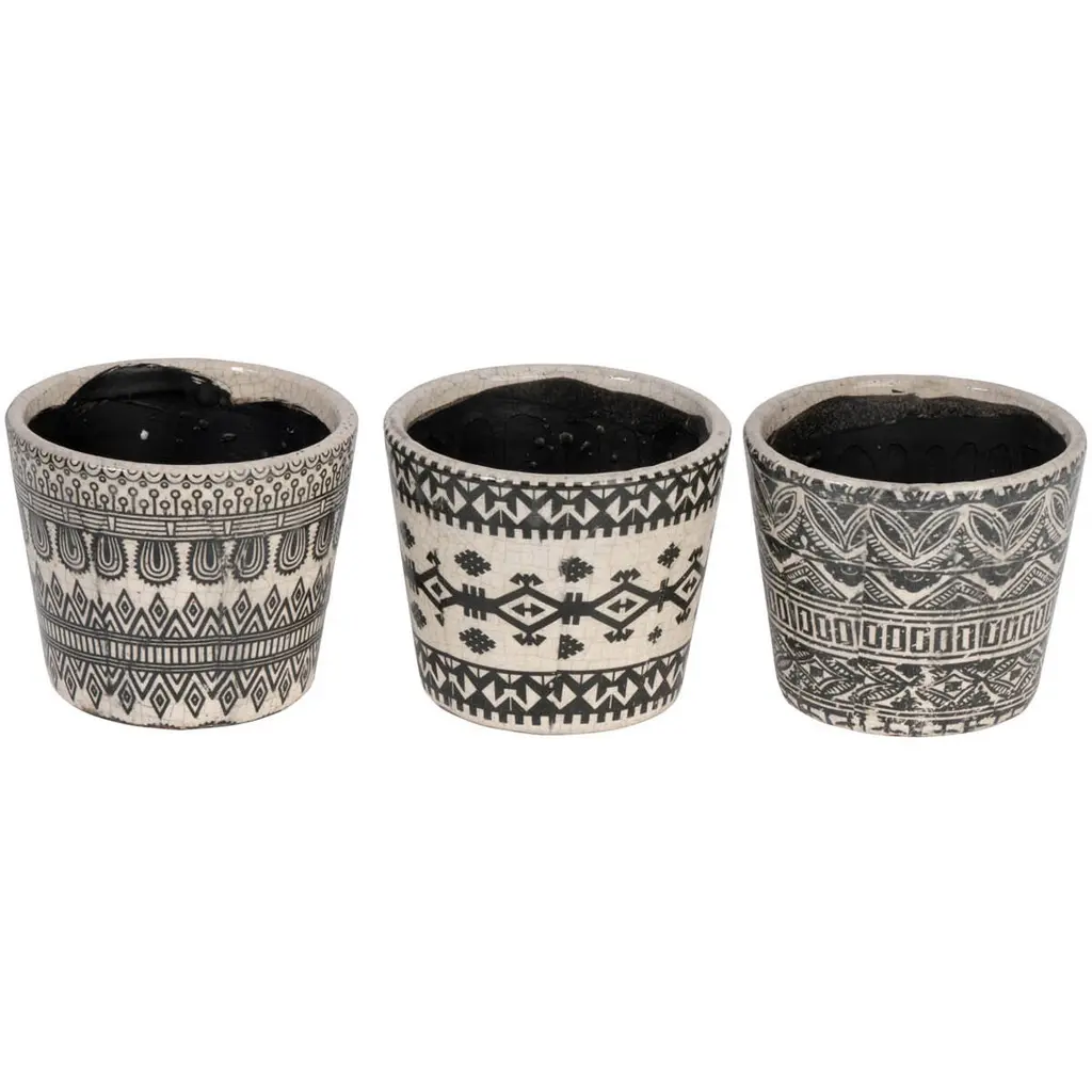 Patterned Terracotta Planters - Set of 3 - Black/Cream