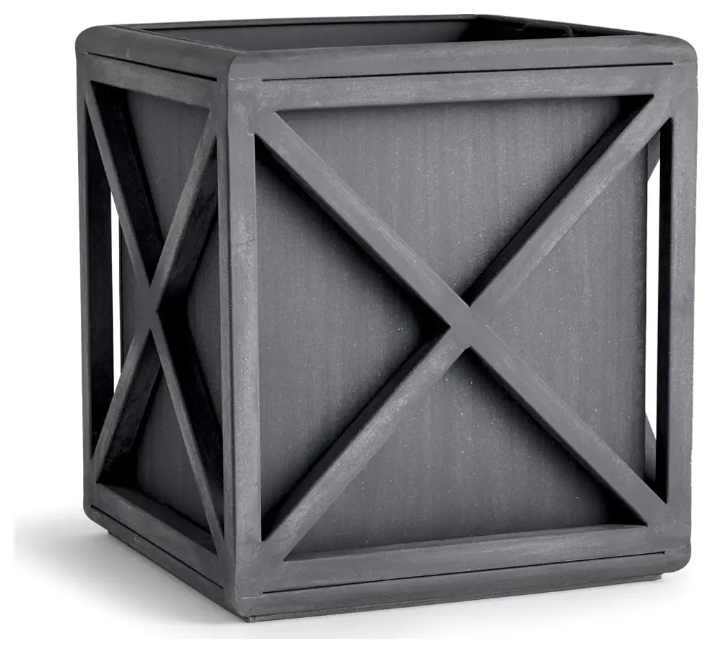 With a finish reminiscent of an aged European zinc, this gorgeous outdoor planter is made to maintain the original finish over time, even when exposed to the elements. Durable as well as beautiful. How brilliant! With it''s classic X design and sleek curved corners, a stunning look for patio, porch or lanai.