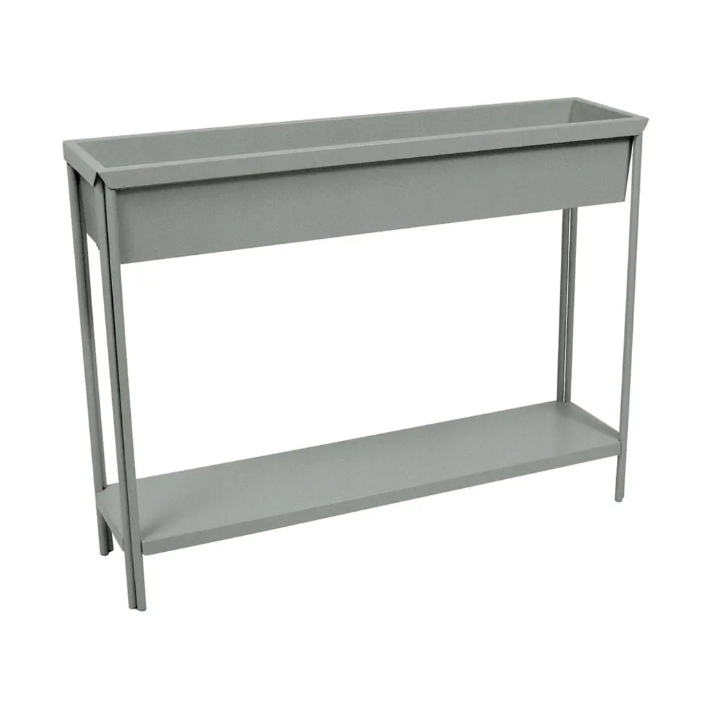 Your outdoor garden reaches new heights with the Terrazza Planter by Fermob. With its sleek lines and contemporary look, the Pocci & Dondoli design brings life to your patio or garden. Crafted from steel, the planter has a top folded steel sheet tray and bottom shelf. An offset drainage system in the tray makes watering easy and keeps your plants from standing in water. The planter is ideal for displaying potted plants on top and starting seedlings for your vegetable garden on the bottom shelf. Features