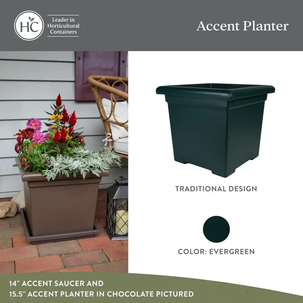 The Hc Companies 15.5" Accent Square Plant Pot W/ Drainage, Classic Planters For Indoor & Outdoors Plants, Lightweight & Resists Sun Fading, Evergreen