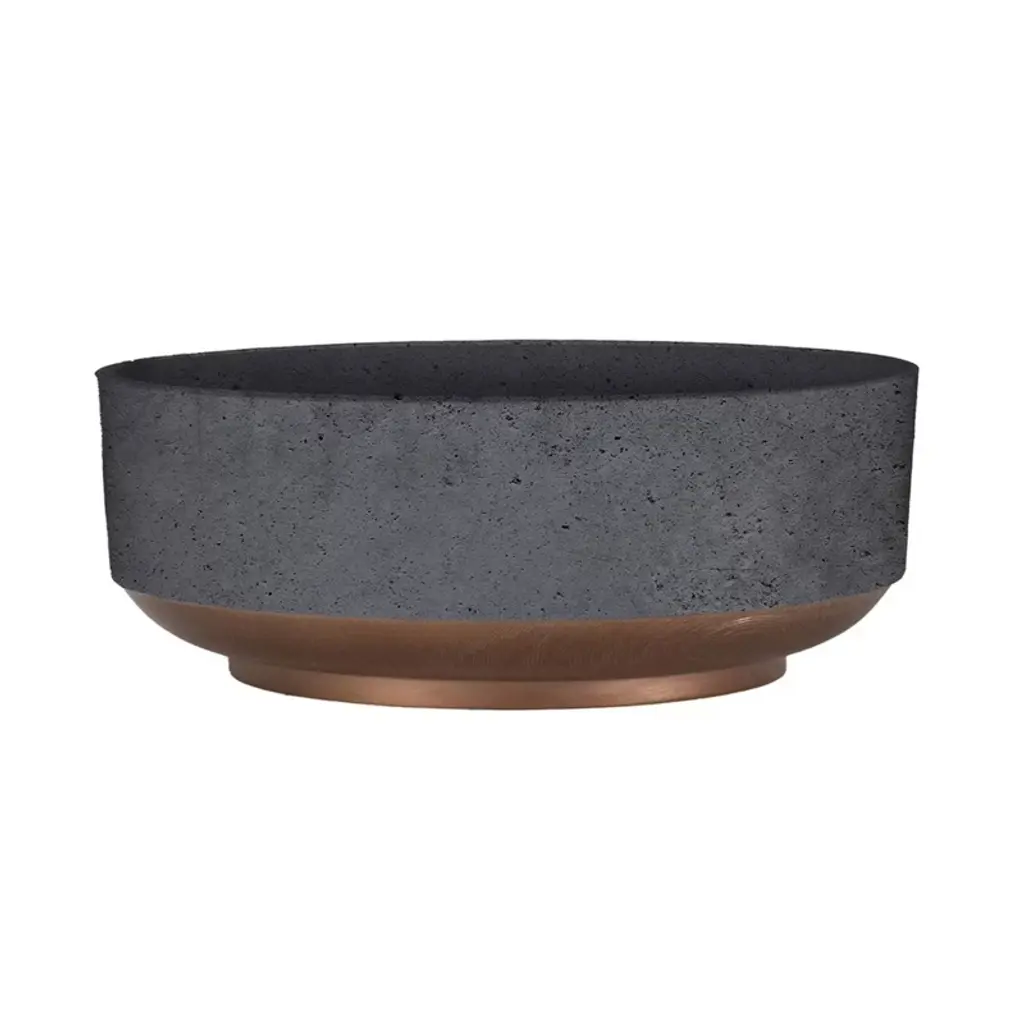 The Hc Companies 8 Inch Round Capri Bowl Decorative Indoor Flower Succulent Planter Pot With Drain Plug Hole, Faux Concrete With Copper Base (10 Pack)