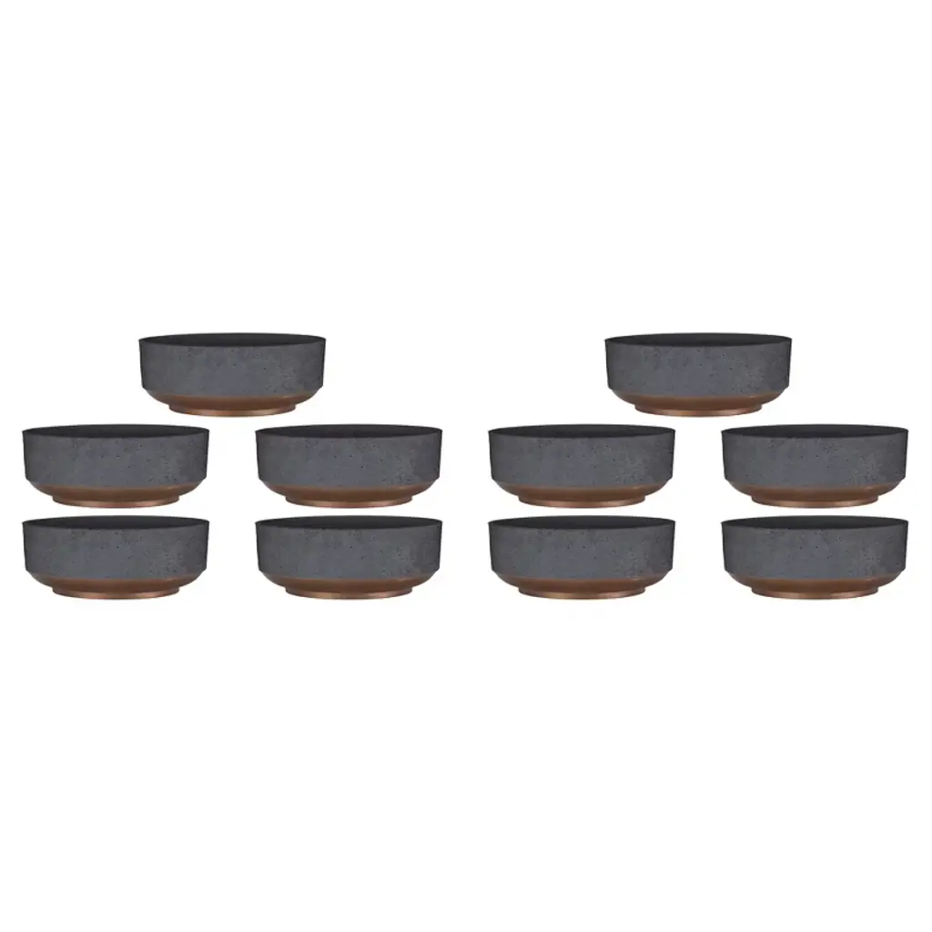The Hc Companies 8 Inch Round Capri Bowl Decorative Indoor Flower Succulent Planter Pot With Drain Plug Hole, Faux Concrete With Copper Base (5 Pack)