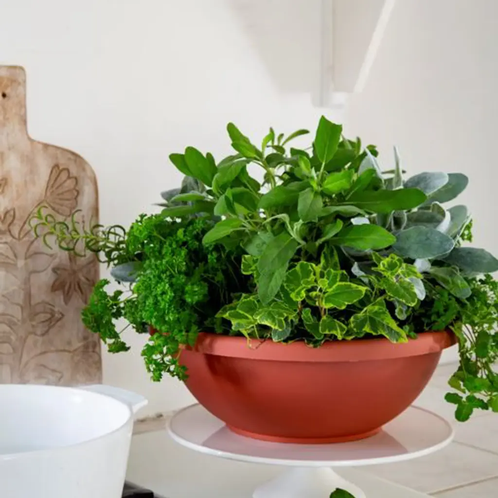 For a planter that's as tough as it is versatile, look no further than this handy dandy HC Companies 18-Inch Garden Bowl Planter Pot. This garden bowl is perfect for shallow-rooted plantings and flowers, and the stable, large flat bottom makes it great for setting on a number of spots. Set this planter on a table, ledge, stand, or post to really show off your plants. This particular planter pot has an 18-inch diameter with an 8-inch depth. Constructed with heavy, durable resin, this planter is leakproof and stands up to bumps and bruises along the way. Whether hot or cold, wet or dry, this pot resists cracking and fading from the elements. Having a rolled rim around this planter bucket helps you to easily move the container around, even when it is full of soil. Whether you are growing a fern on your window sill or putting together a patio herb garden, HC Companies 18-Inch Resin Garden Bowl Planter Pot is the right choice.
