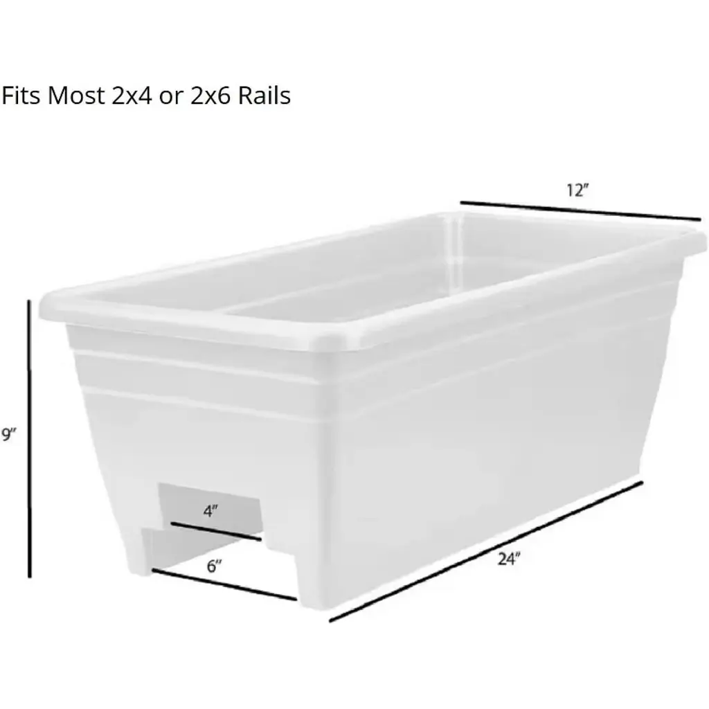 HC Companies Deck Rail Planter made with thick wall construction from durable resin will withstand the elements. Will fit 2x4 and 2x6 inch deck rails. Equipped with easy to remove drain plugs. Deck box planter Thick, durable wall construction; enhances deck settings. Fit two sizes of deck rails 2-inch by 4-inch and 2-inch by 6-inch.