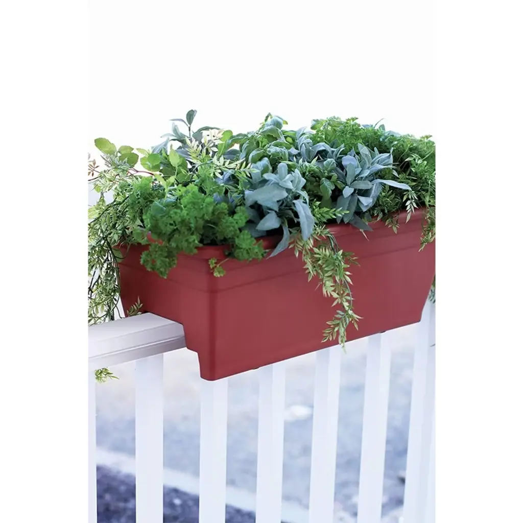 HC Companies Deck Rail Planter made with thick wall construction from durable resin will withstand the elements. Will fit 2x4 and 2x6 inch deck rails. Equipped with easy to remove drain plugs. Deck box planter Thick, durable wall construction; enhances deck settings. Fit two sizes of deck rails 2-inch by 4-inch and 2-inch by 6-inch.
