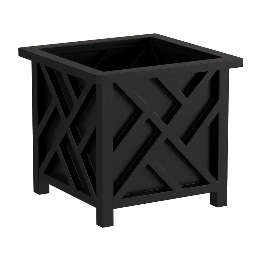 Add a contemporary aesthetic to your home's outdoor designs with this Chippendale Style Planter for Outdoors. The planter is designed to have a vintage aesthetic thanks to the wooden appearance. It's made out of sturdy plastic that stands up to the outdoor elements with ease. Place it on the patio, in the entryway, or on the back porch. You can even use it indoors if you so wish. Polypropylene. Weight capacity: 22 pounds. Interior: 11-3/4" sq. x 11"H - 14-3/4" sq. x 13-1/4"H, overall.