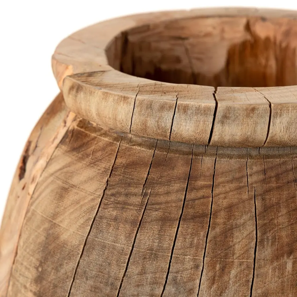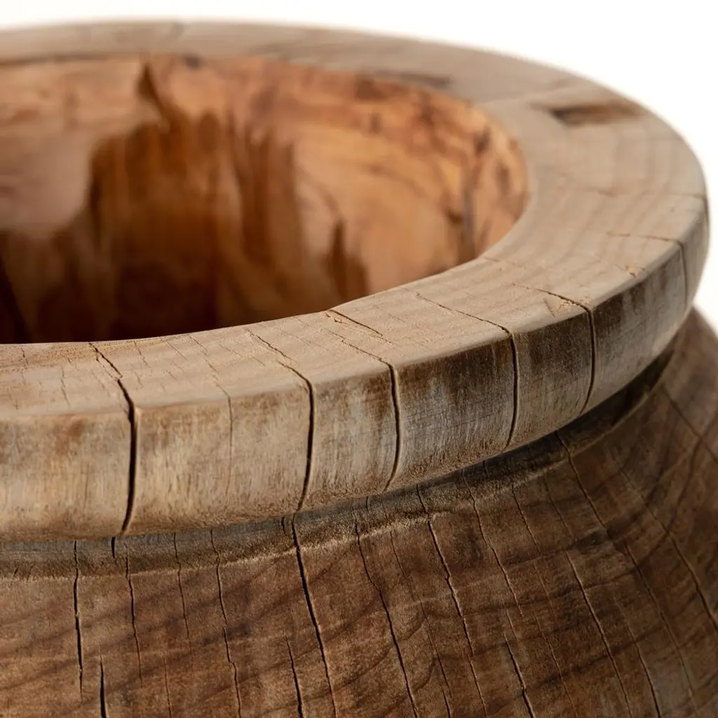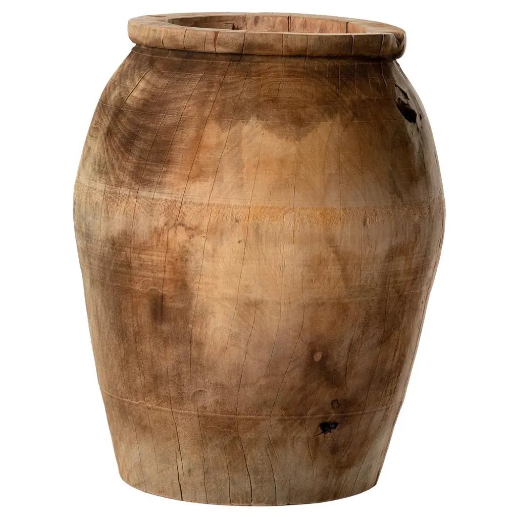 Tiana Rustic Lodge Brown Reclaimed Wood Amphora Planter Decorative Vase