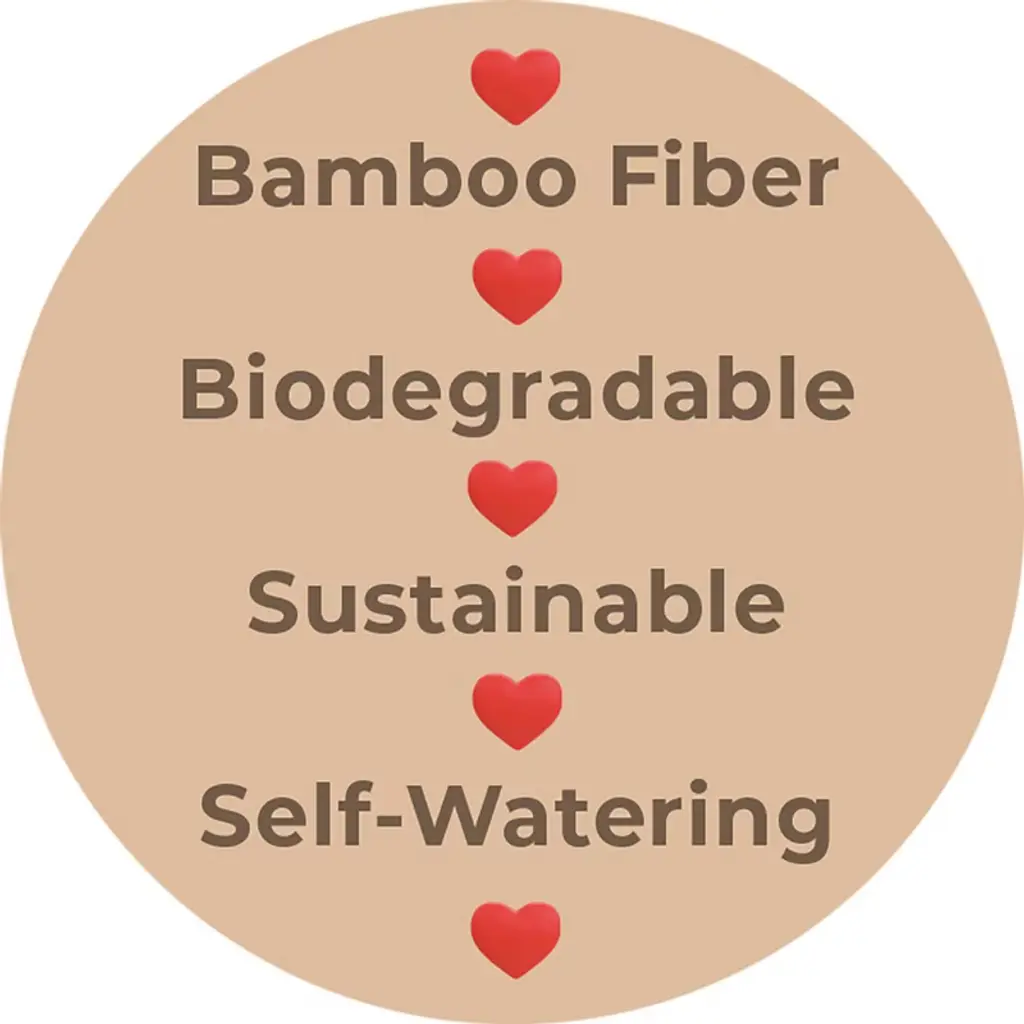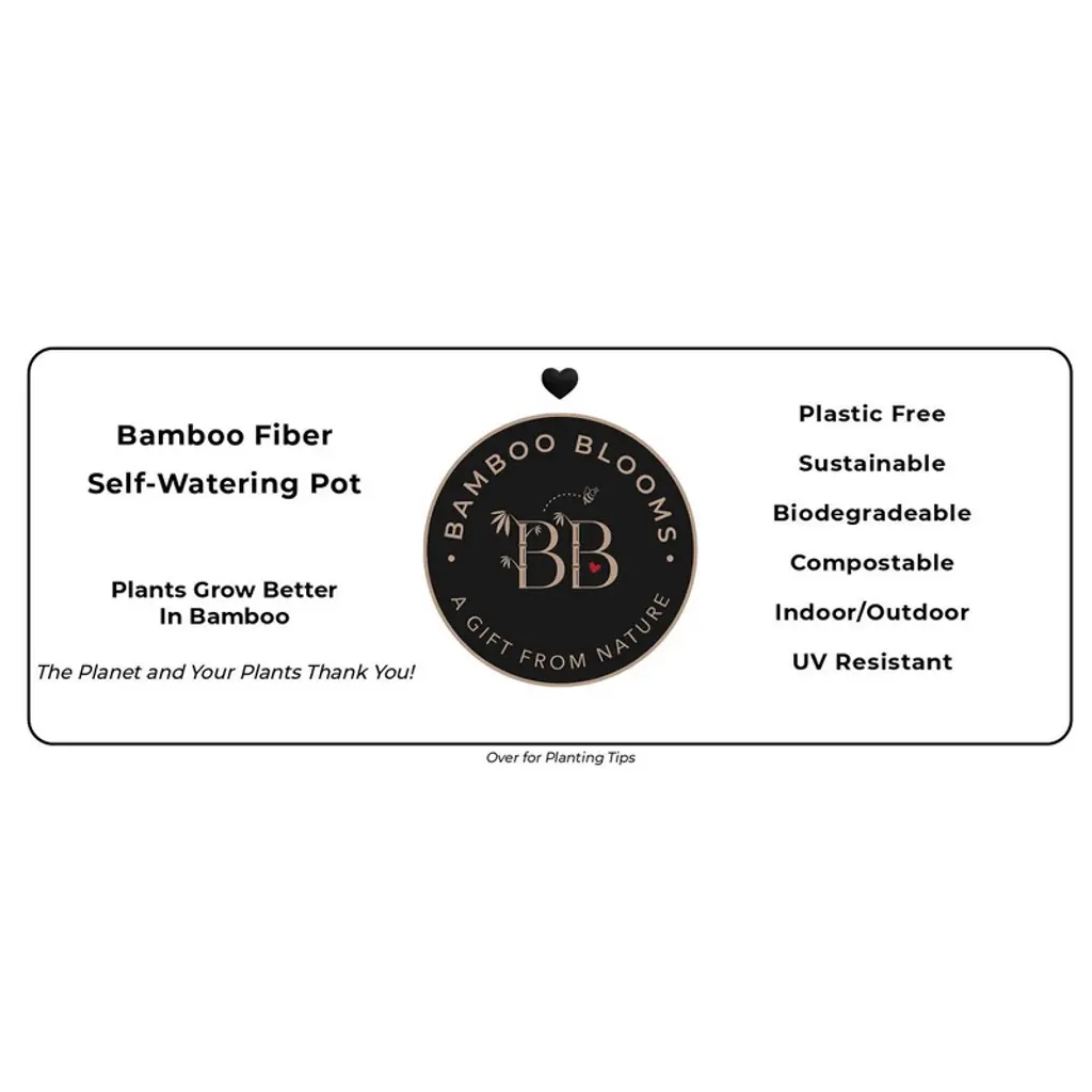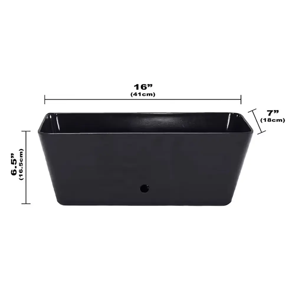 Worlds first Bamboo Fiber self-watering pot, this 16" Black Rectangular self-watering planter is made from sustainable, biodegradable, all natural Bamboo Fiber and corn starch. Plants thrive in this natural Bamboo Fiber planter that is plastic free. The soil is better aerated by the unique water well in the base, allowing better nutrient management, helping the plants grow healthy and strong. These planters should be treated like ceramic, suitable for use in hot or cold climates inside or outside. At initial planting, water from the top until water is just below the overflow. Then periodically check the water level in the base and add water to the well from the bottom access or from the top of the planter. The soil draws water up from the well as needed using capillary action just like a wick. No more overwatering, strong healthy plants is the result! Everyone gets a "green thumb" growing in bamboo planters and just by keeping water in the well! When you are finished with your planter just break it up and put into your compost bin. Over time the material will degrade back to nature.