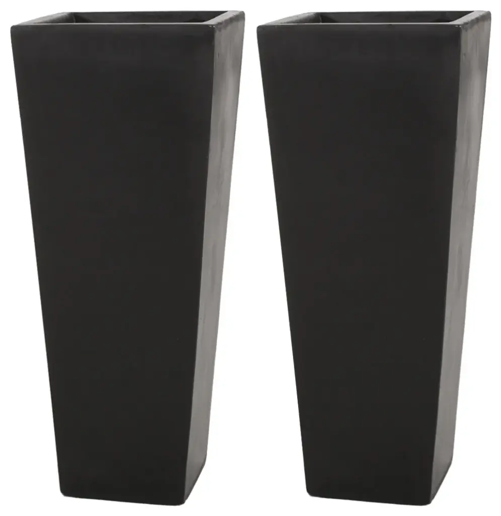 Toland Outdoor Modern Cast Stone Planters (Set Of 2), Matte Black, 13 W X 13 D X 32.5 H