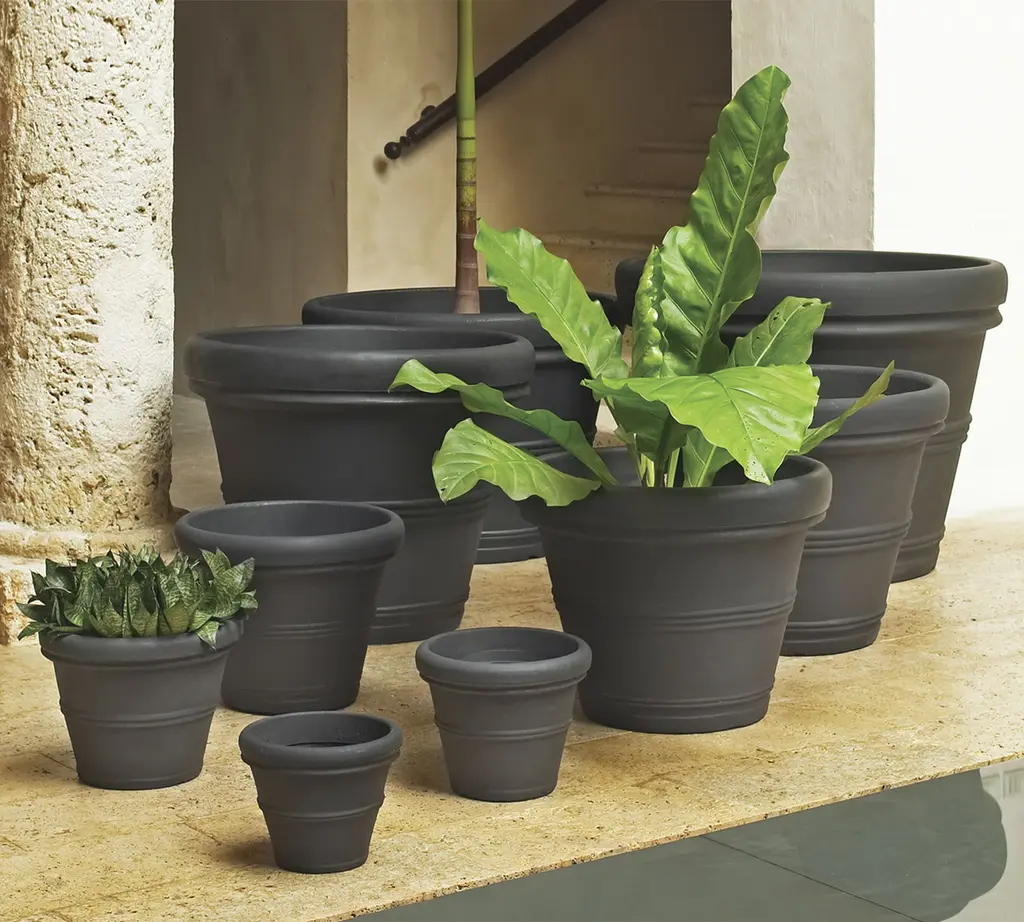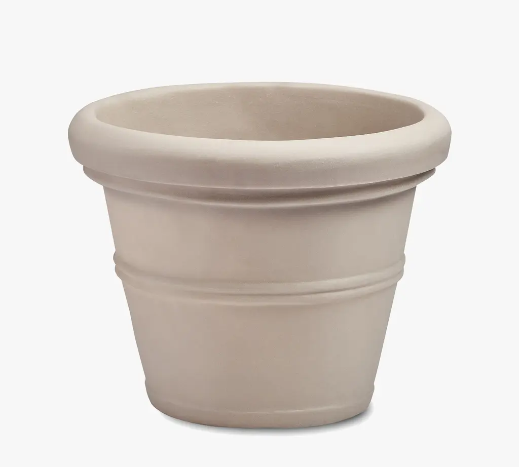 This classic rolled planter looks like stone but it's actually made of recycled plastic that's lightweight and therefore easy to position (or reposition). Double-walled for superior durability, it's also UV-resistant to hold up to years of sunshine.