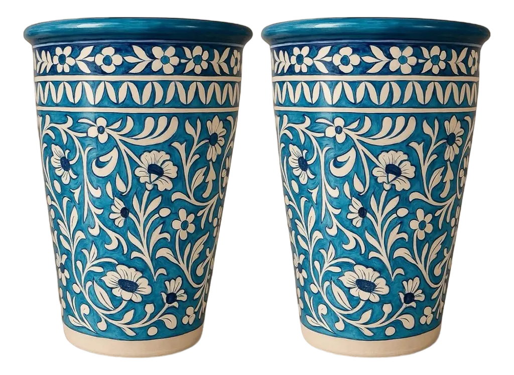 Transpac Cement Citrus Indigo Planters Set Of 2 Stylish Home Decorations For Spring And Garden