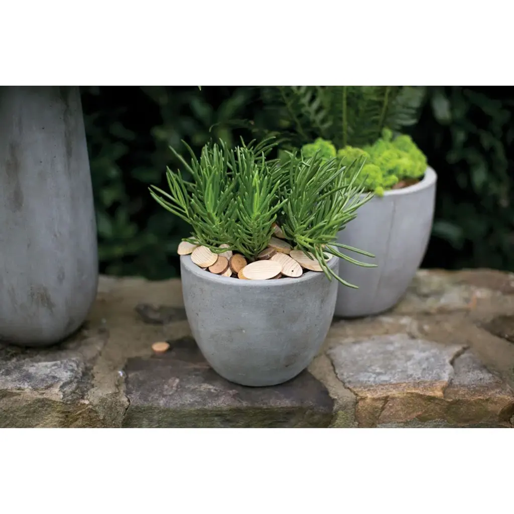 Embrace the simplicity of modern design with this concrete planter. Its minimalist round shape and sturdy presence provide the perfect backdrop for your favorite indoor or outdoor plants.