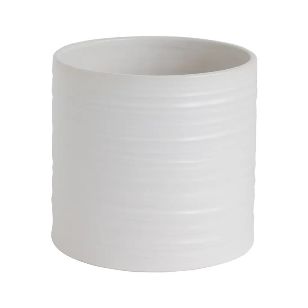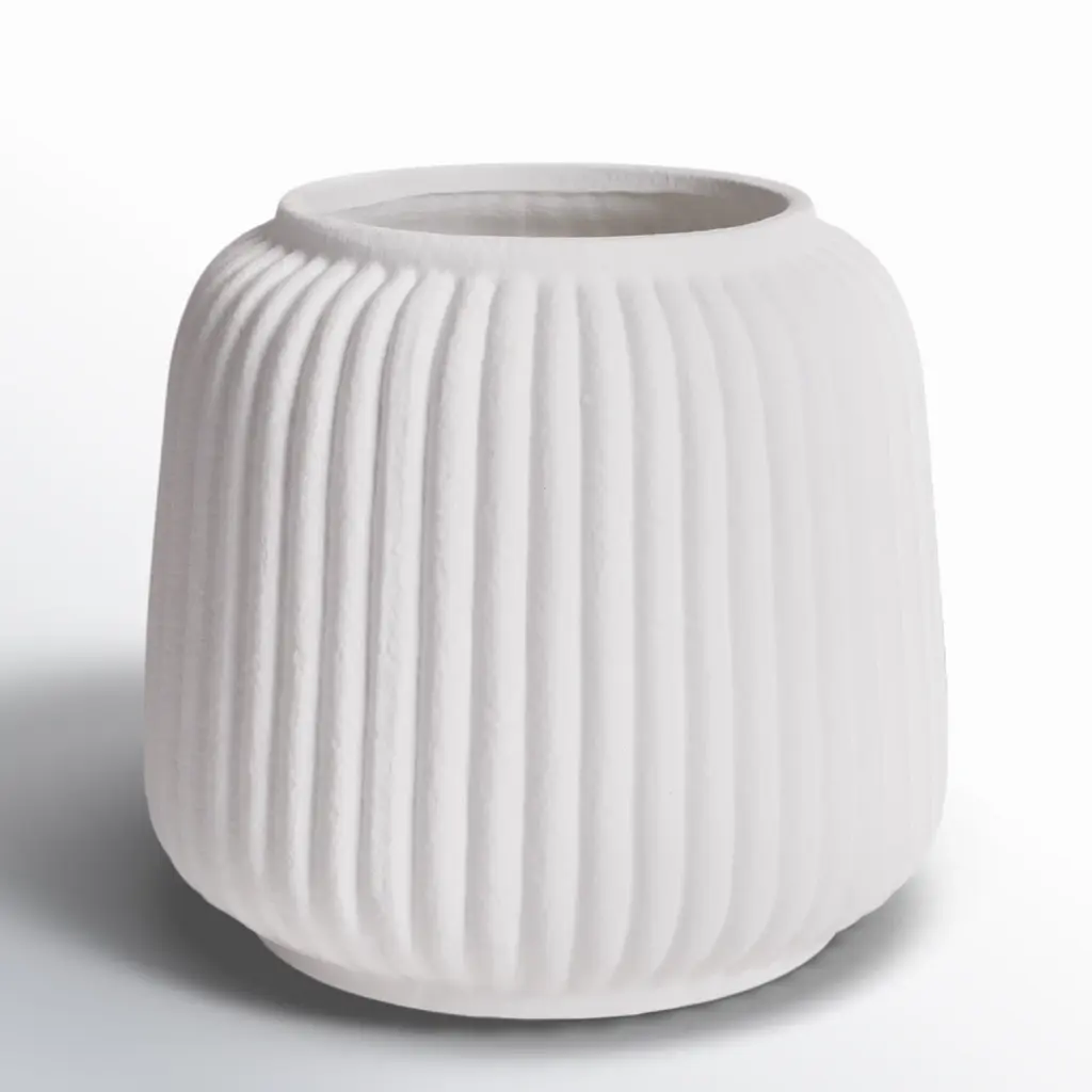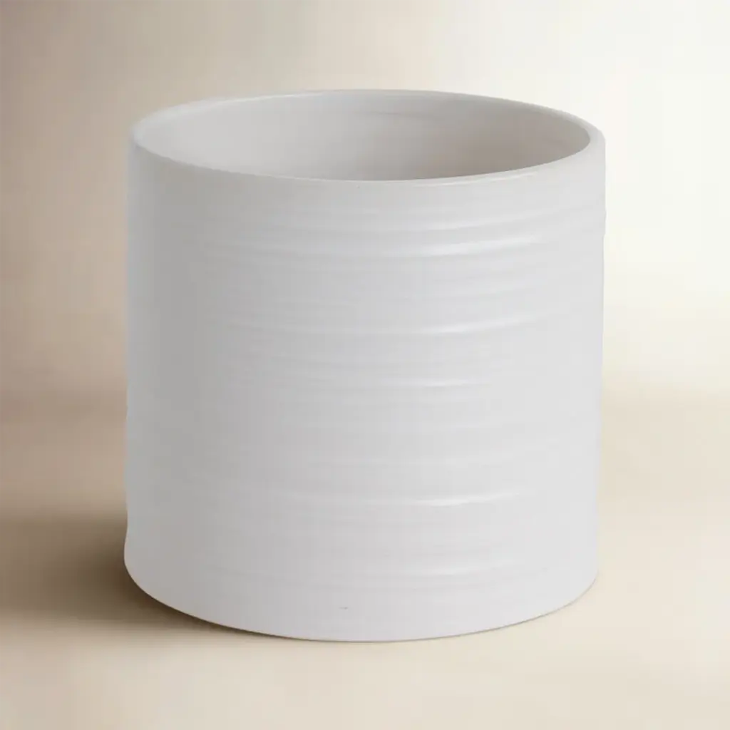 Simple striated ceramic pot in a matte white glaze, modern and perfect for home decor or florals.