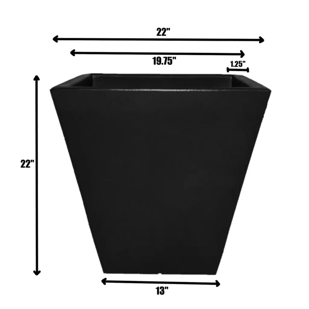 Tusco Products Cosmopolitan Planter, Square, Black, 22in