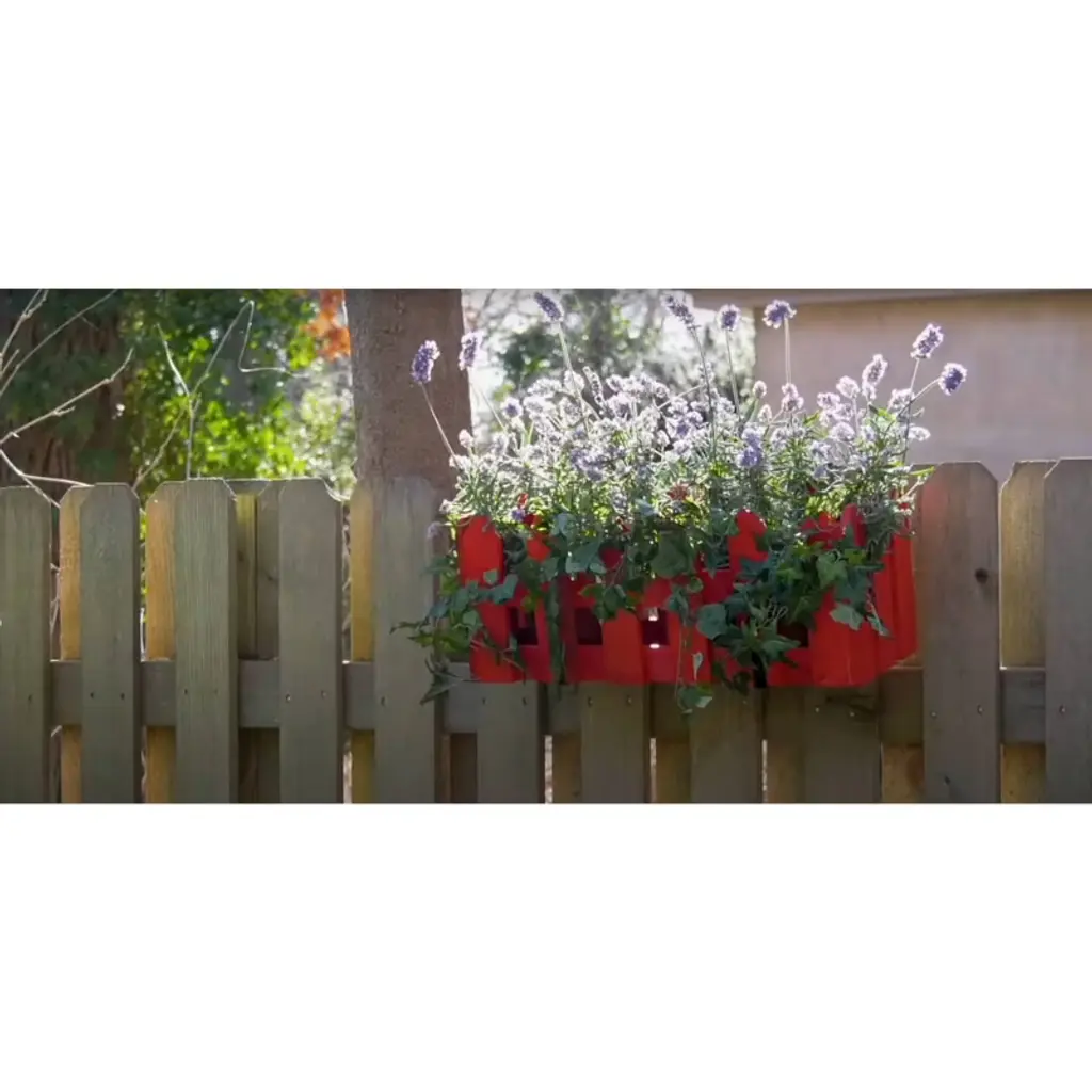 Elevate your flowers to a new level! Simply place three 6" potted plants right into the box and you have an instant garden without any of the work! Hang on your rail, fence or even off lattice. Dress up your areas with plants and flowers in this charming planter! (20"Long X 7"Wide X 8" High) Get those potted plants up off the ground and keep them in view with this rustic-chic wooden planter box. Hang on a railing, fence, or even lattice and elevate their status as a staple of your outdoor space. From Ultimate Innovations.