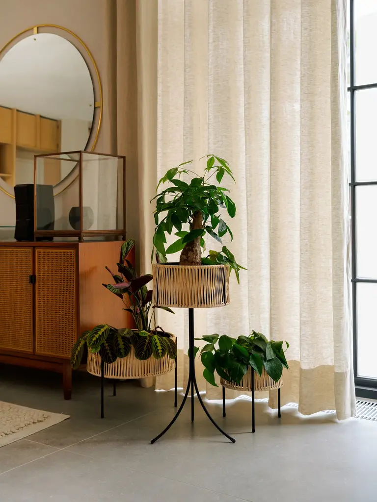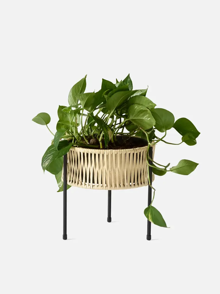 This product is final sale. Offered in three different sizes, the Umanoff Planter marries sleek powder coated steel lines with curved handwoven rattan for a natural contrast. Designed in 1961 by the late Arthur Umanoff, a master of mid-century modern, the elevated planter is suitable for both indoor and outdoor use.