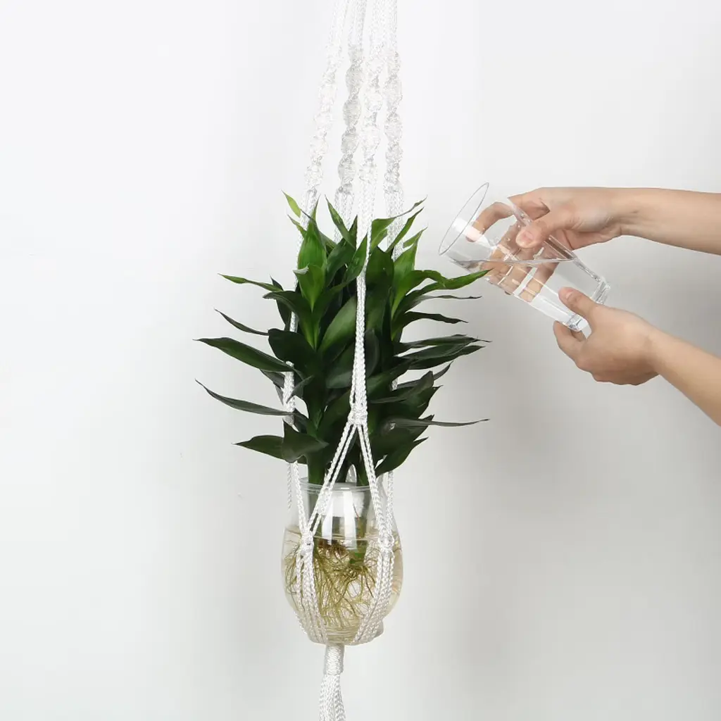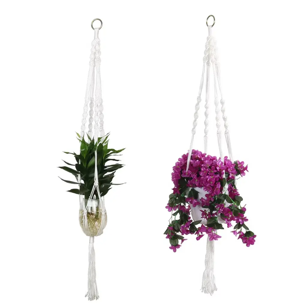 Unique Bargains Balcony Nylon Macrame Flower Holder Rope Planters Hanger White 43.3 Inch 1 Pc