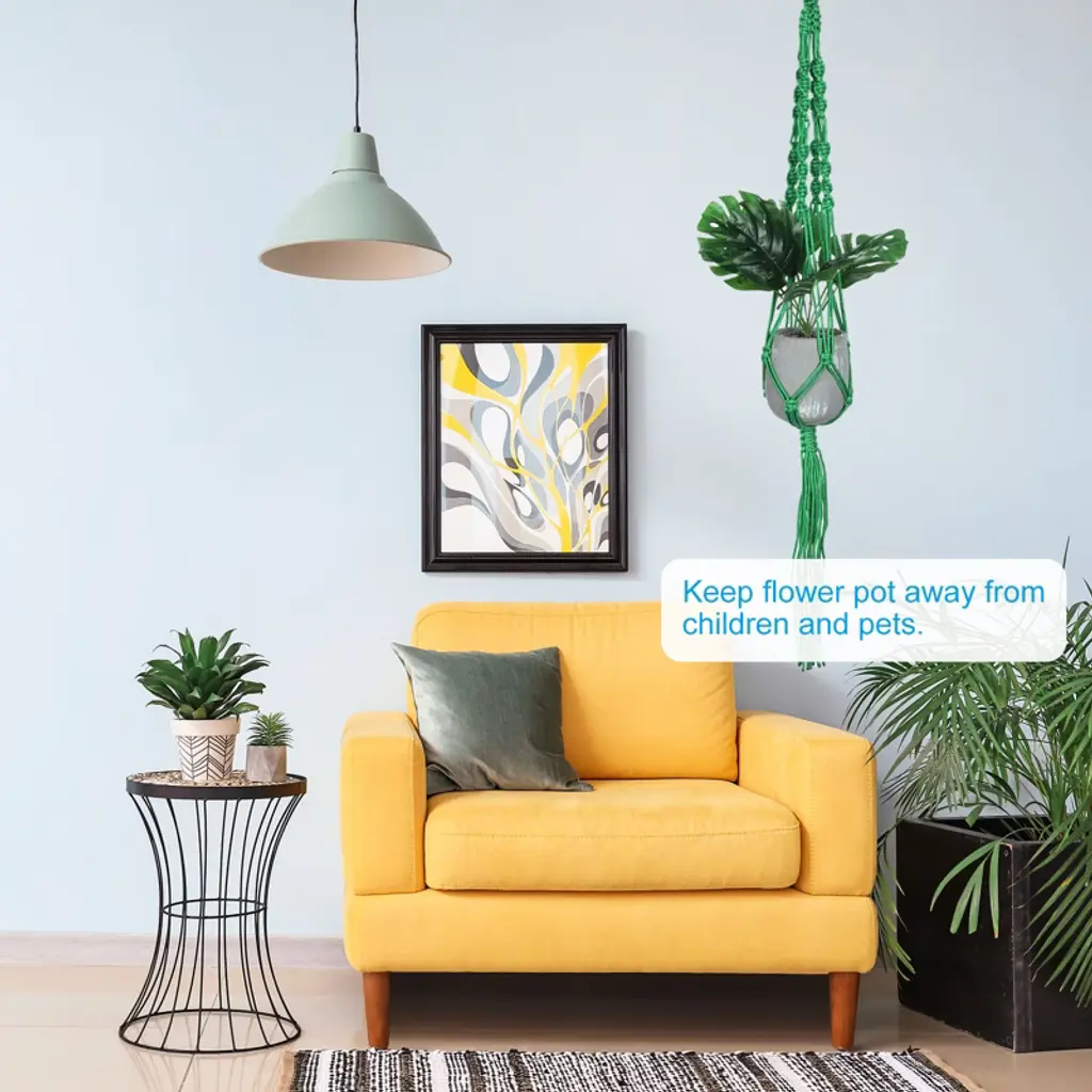 The macrame hanging planter for flower pots is used to hold and display flower pots, providing a decorative and functional solution for organizing and showcasing plants in various indoor and outdoor spaces. Suitable for hanging flower pots, allowing them to be displayed at different heights in gardens, balconies, or indoor spaces. The macrame knot design adds a touch of artistic atmosphere to the space, creating a pleasing display effect.