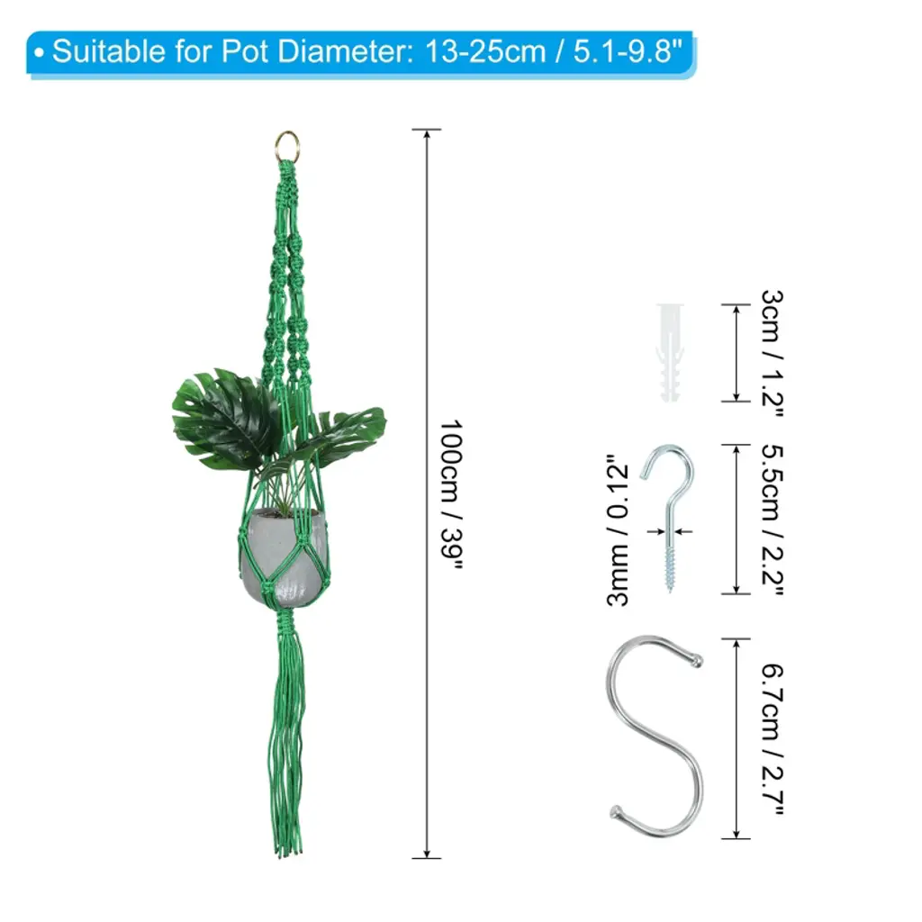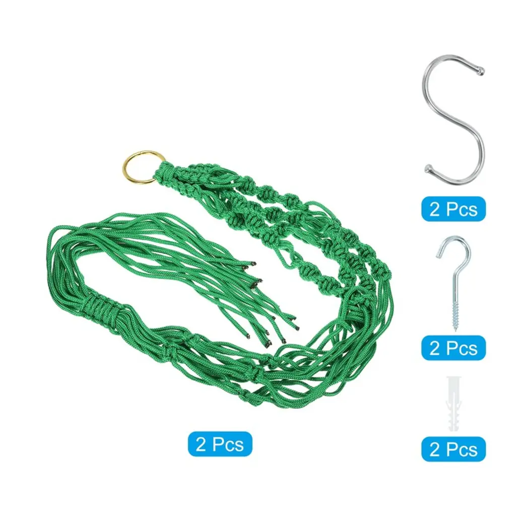 Unique Bargains Indoor Outdoor Decoration Handmade Macrame Hanging Planter Flower Pot Hanger 2 Pcs Green