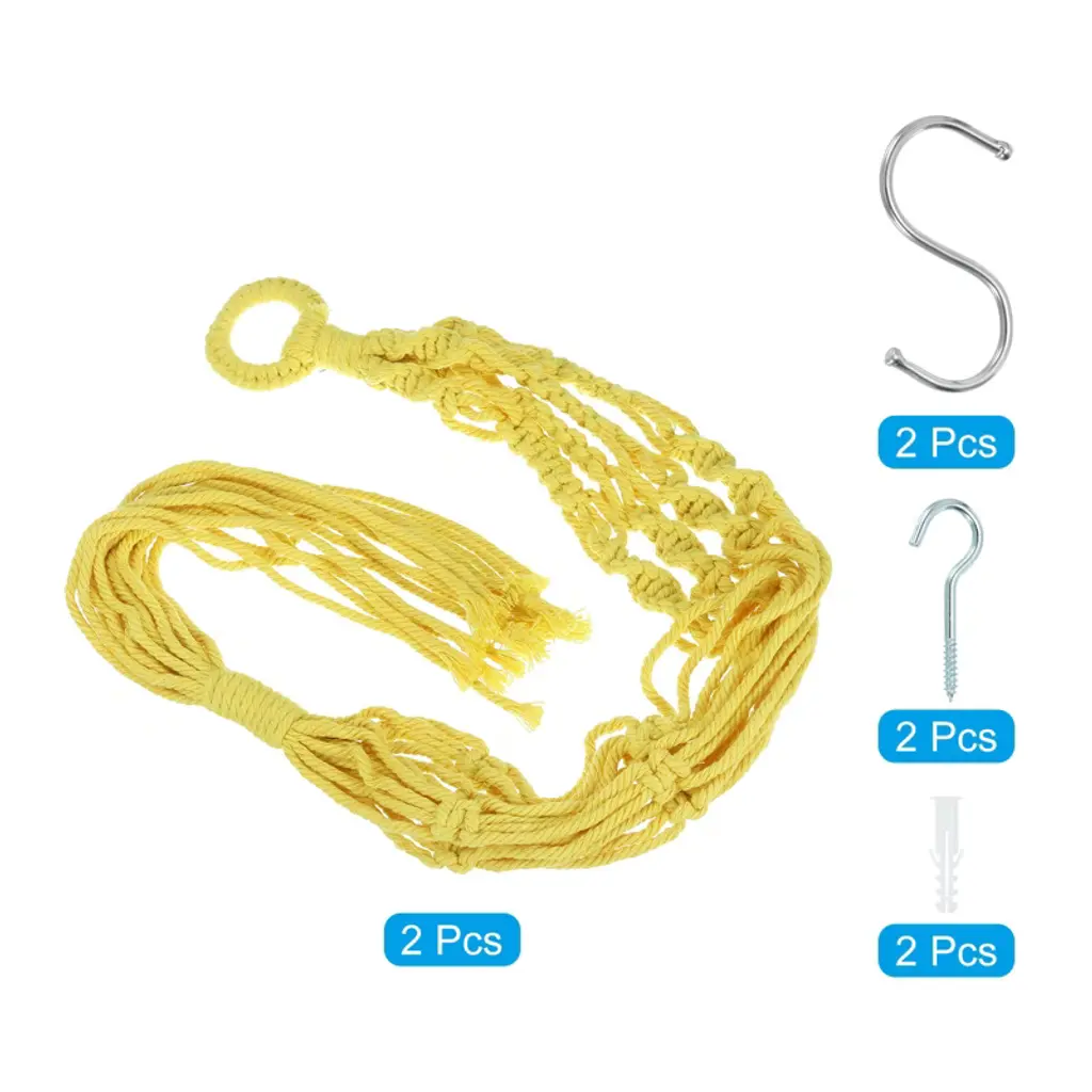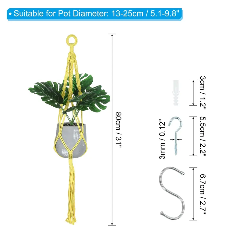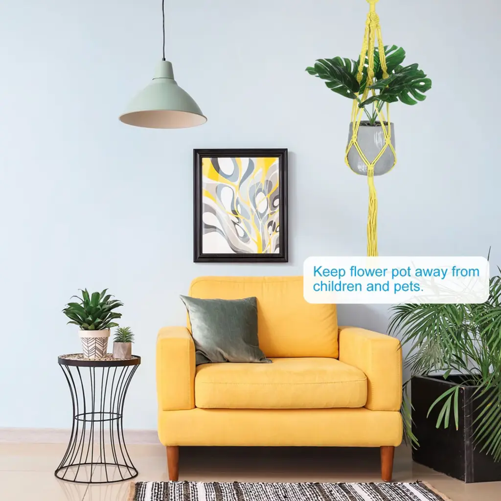 Unique Bargains Macrame Hanging Planter Planter Rope For Decor Yellow