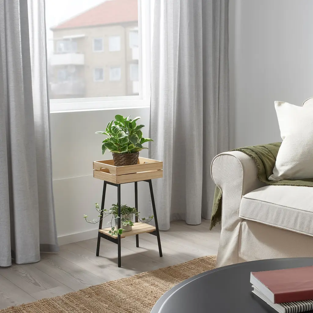 VANILJSTÅNG Plant stand - pine/black 21 ¾ ". A plant stand makes it possible to decorate with plants everywhere in the home. Only for indoor use.