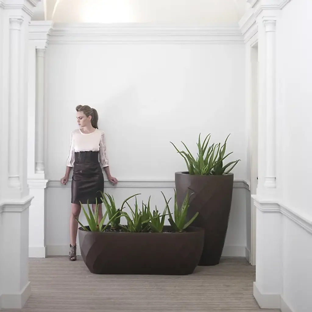 2014 Design. Made in Spain by VONDOM. Vondom's Vases Planters sport a royal thatched texture to complement their matte finish. These modern planters add character to simpler plants, and are perfect for indoor and outdoor use. Made from 100% recyclable polyethylene, this planter is lightweight, impact-resistant, self-watering, and weather-resistant.