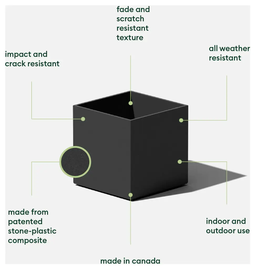 With a compact and minimalist design, the Veradek Geo Cube adds charm to countertops, tables or windowsills. Complemented by its modern appearance, the Geo Cube is thoughtfully curated with versatility in mind"”growing herbs or succulents, organizing desk spaces and creating elongated centerpieces for the dinner table will become easy as ever. This lightweight square planter is proudly crafted in Canada from a patented plastic-stone composite, making it resistant to cracks, fading and UV and easy to clean. With the perfect balance of design, structure and purpose, the Geo Cube is made to pair perfectly with any arrangement, any season.