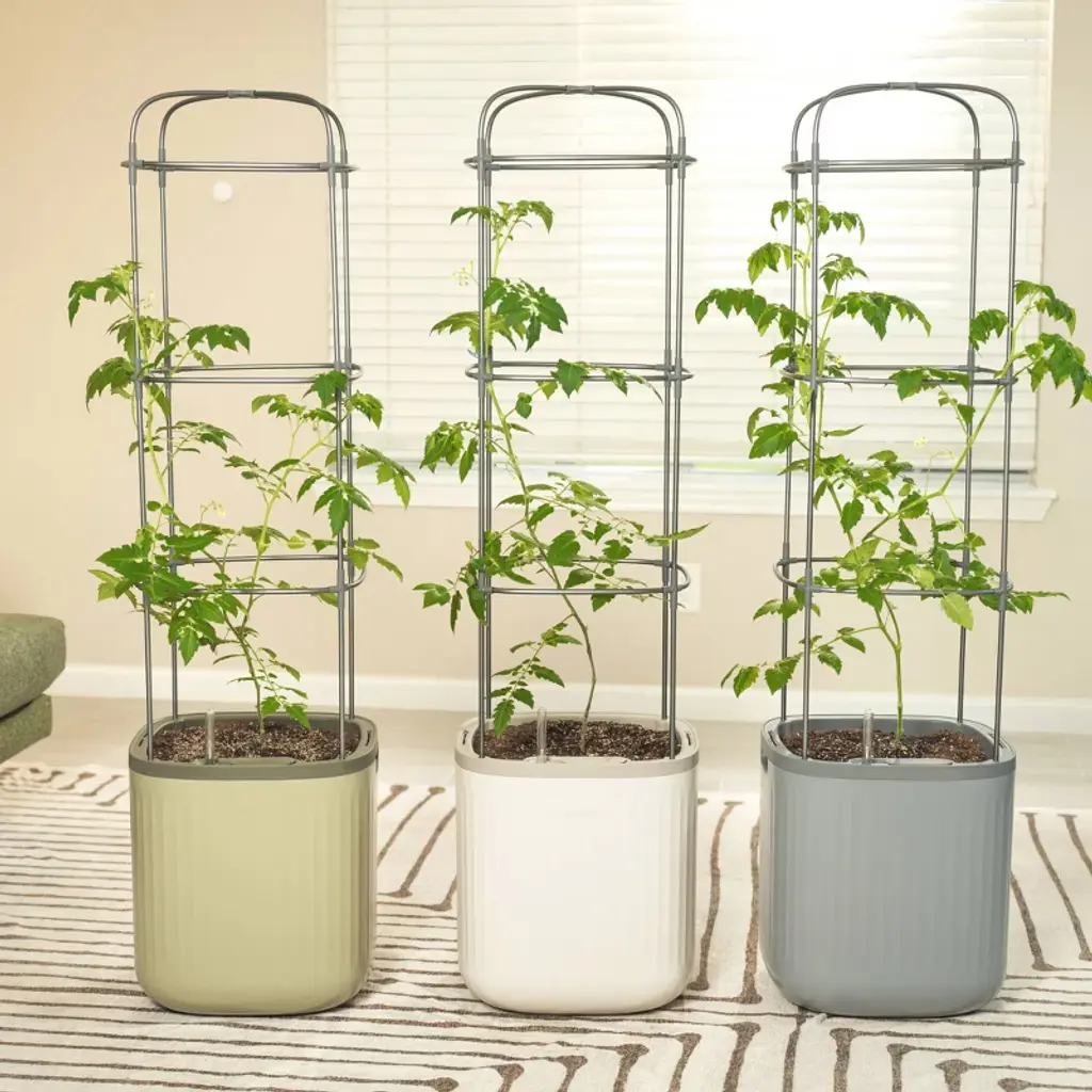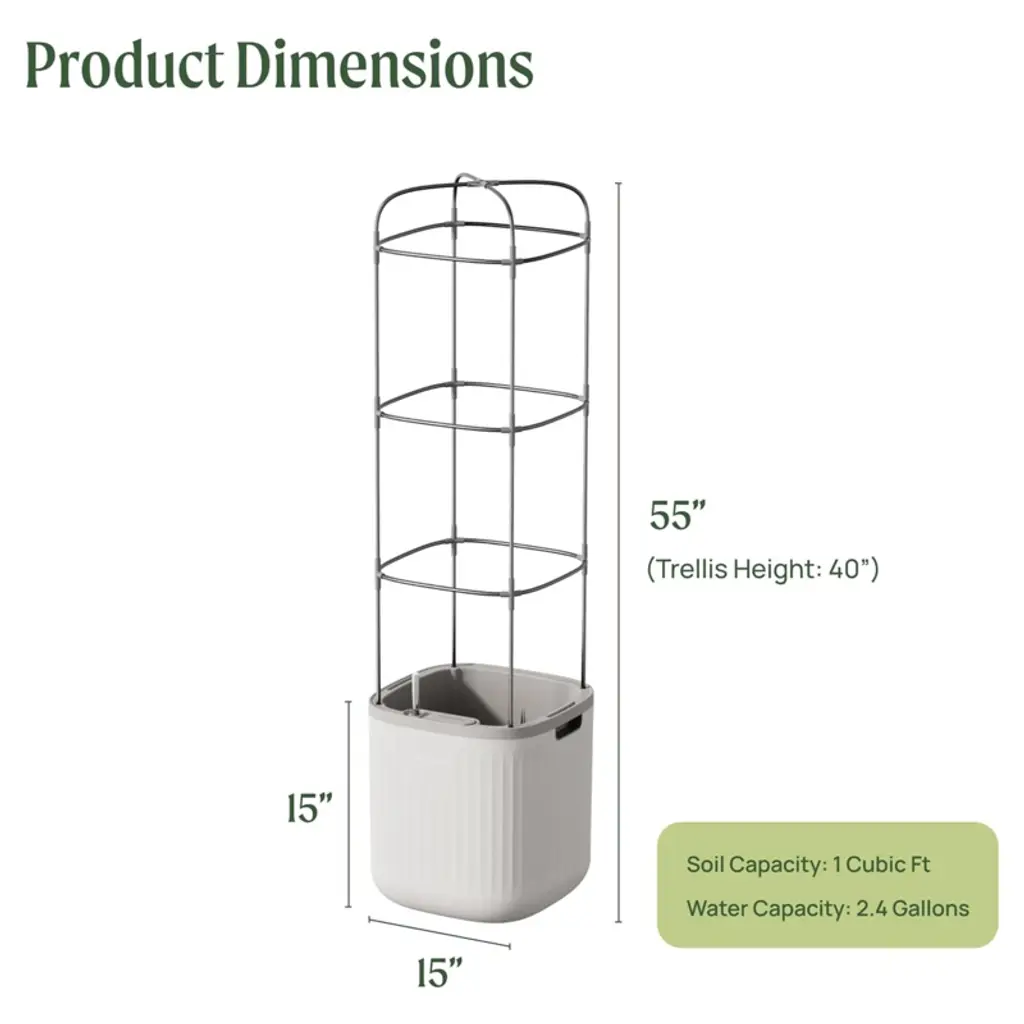 Vego Garden Self-watering Rolling Tomato Rectangular Indoor Outdoor Planter Pot With Trellis Cream White 15"x15"x55"